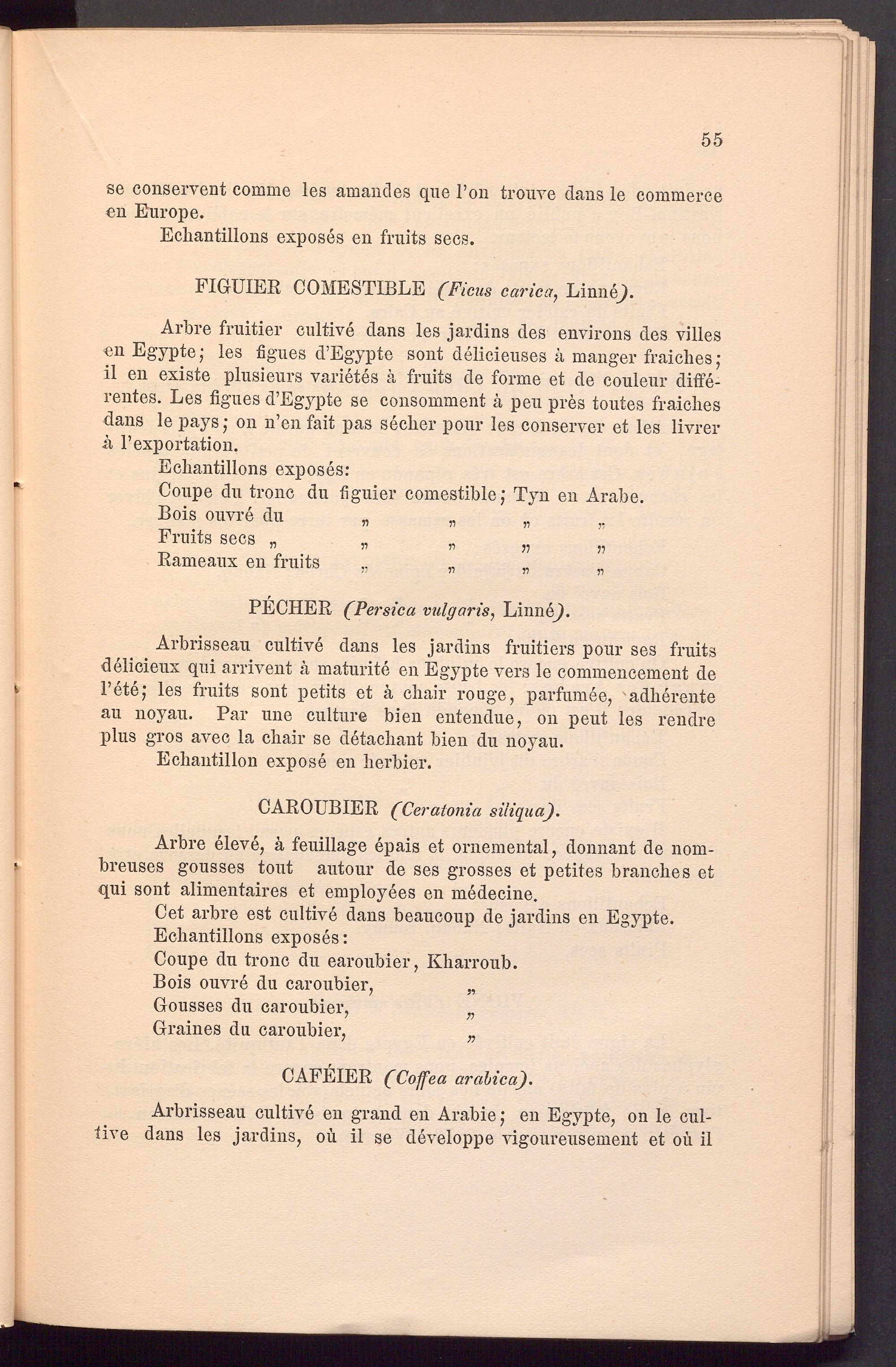 Arbre fruitier cultive dans les jardins des environs des villes eil Egypte; les figues d’Egypte sont delicieuses ä manger fraiches; il en existe plusieurs Varietes ä fruits de forme et de couleur differentes. Les figues d’Egypte se consomment k peu pres toutes fraiclies dans le pays; on n’en fait pas seclier pour les conserver et les livrer it P exportation.