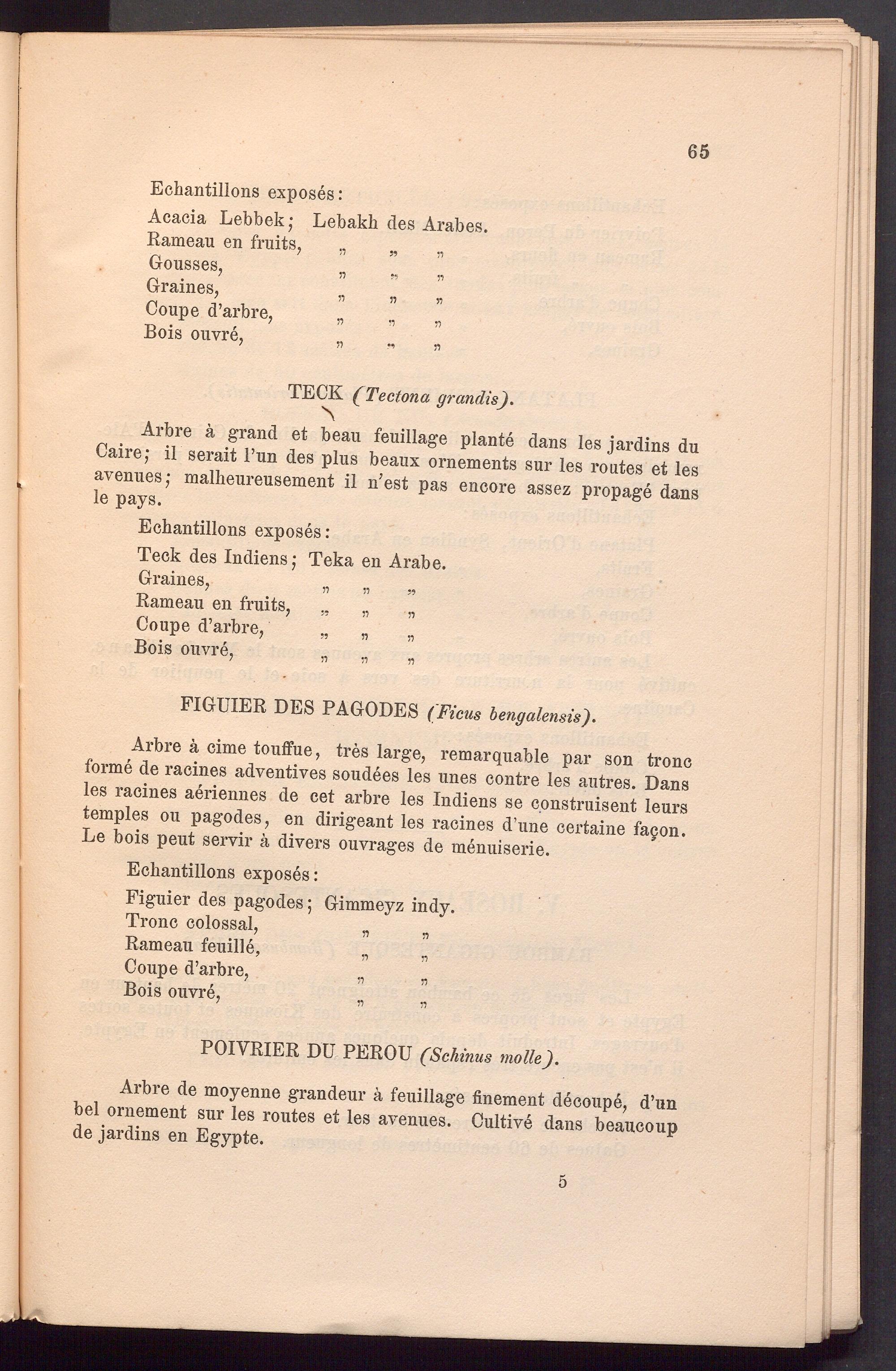 Arbre k grand et beau feuillage plante dans les jardins du Caire; il serait Fun des plus beaux ornements sur les routes et les avenues; malheiireusement il n ; est pas encore assez propage dans le pays.
