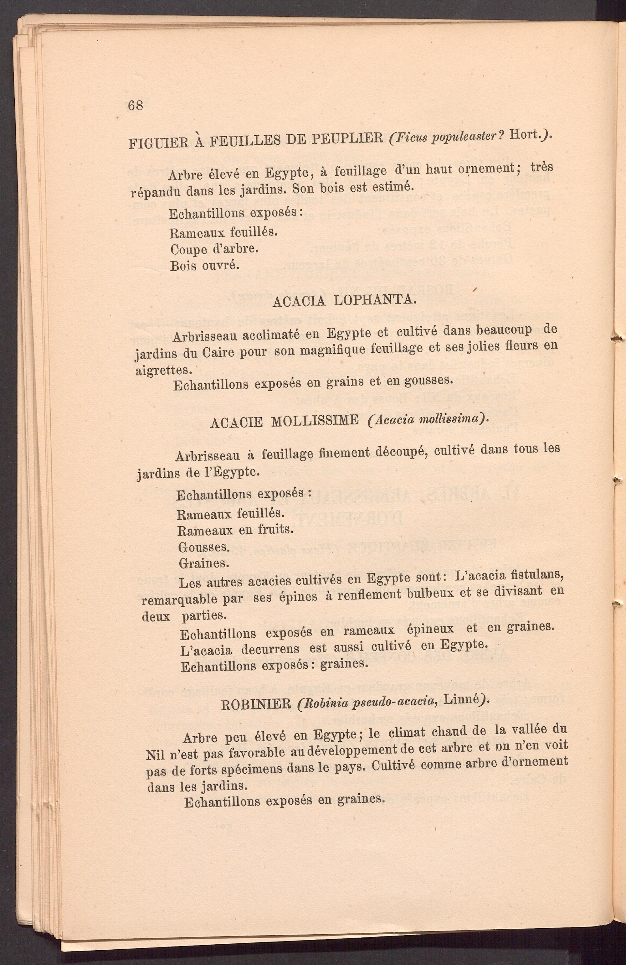 Les autres acacies cultives en Egypte sont: L’acacia fistulans, remarquable par ses epines ä renflement bulbeux et se divisant en deux parties.