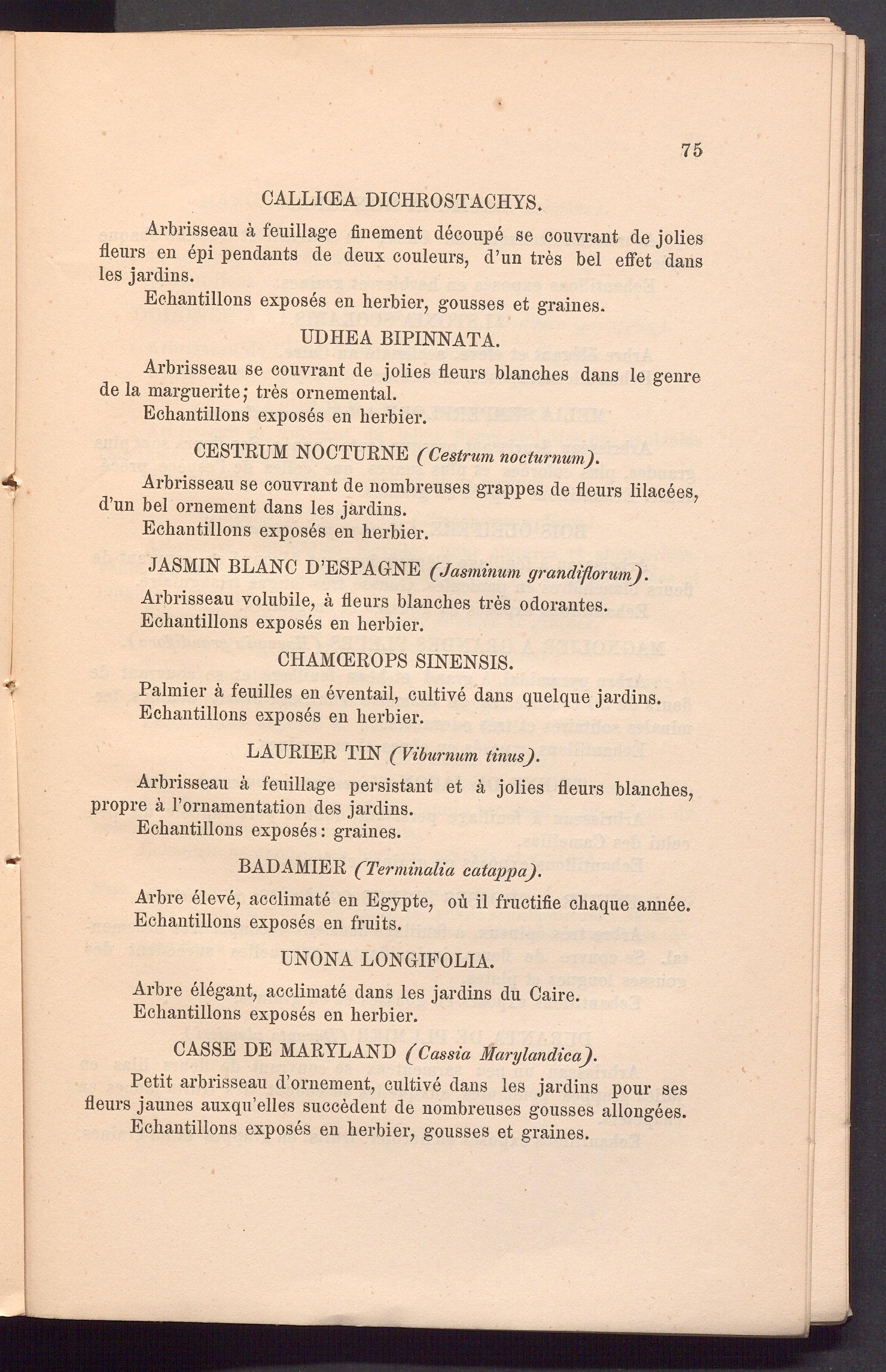 Arbrisseau volubile, ä fleurs blanches tres odorantes. Eehantillons exposes en herbier.