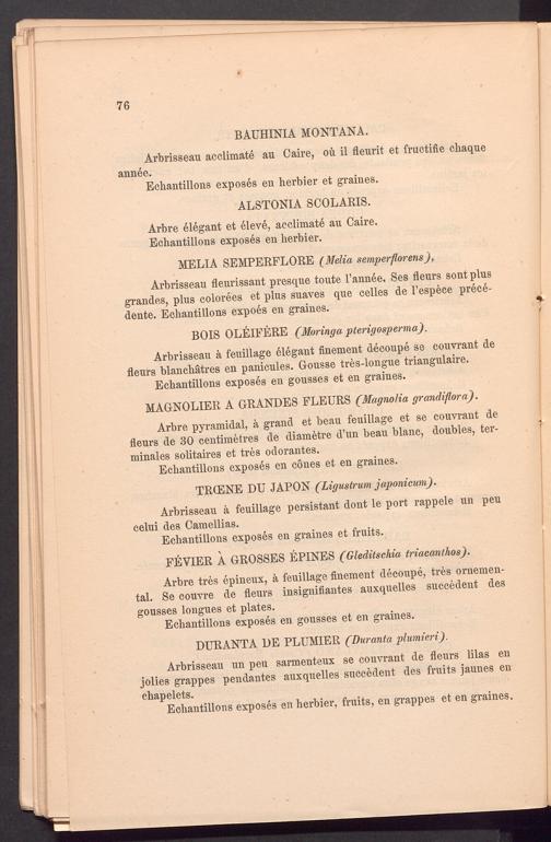Arbrisseau fleurissant presque toute 1’annee, Ses fleurs sont plus grande, s, plus colorees et plus suaves que celles de l’espece prece- dente. Echantillons expoes en graines.