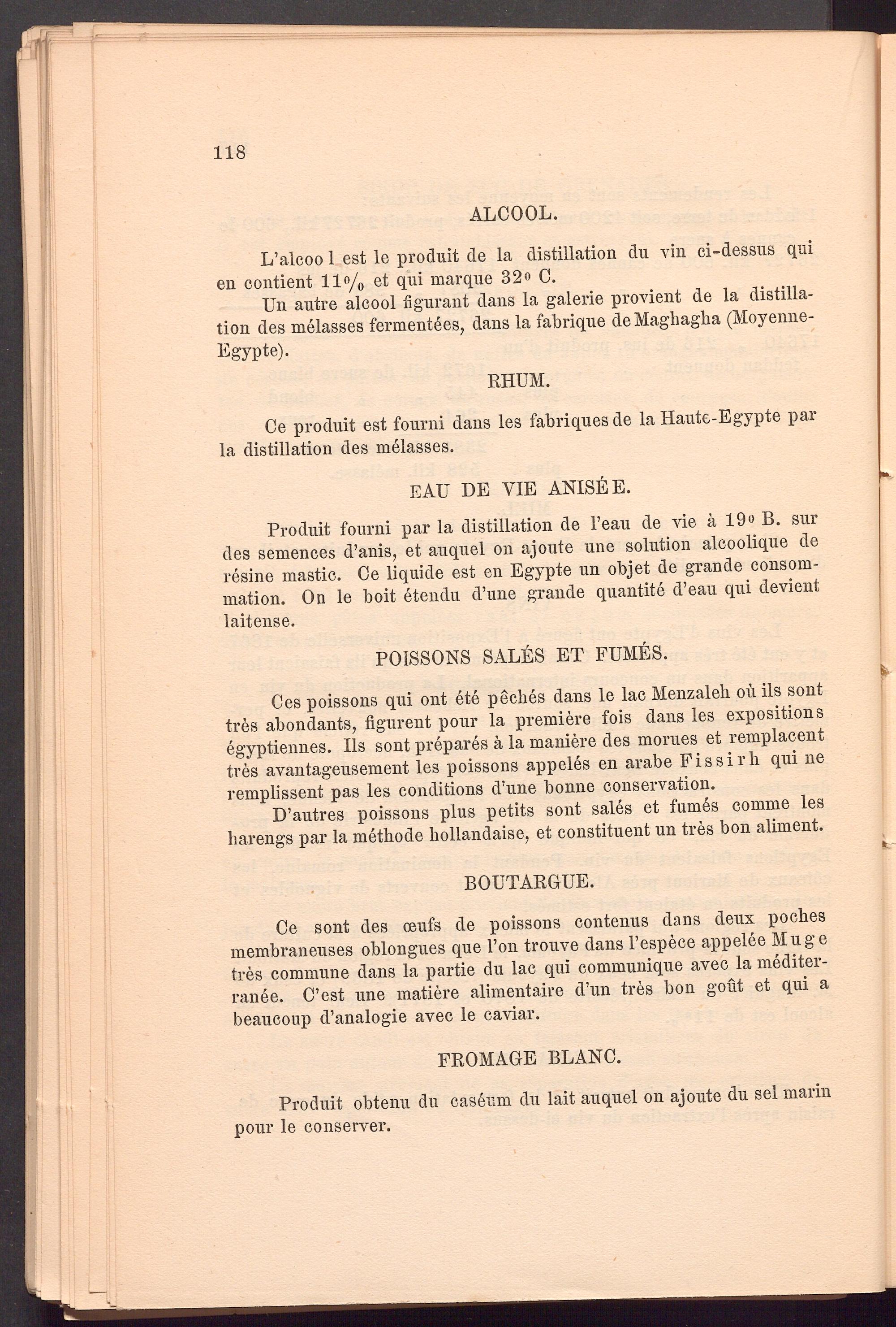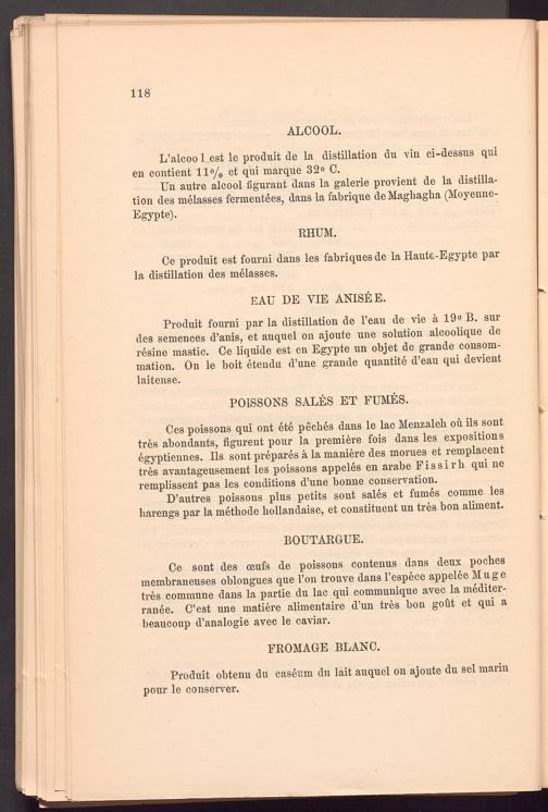 Ces poissons qui ont ete peches dans le lac Menzaleh oil ils sont tres abondants, figurent pour la premiere fois dans les expositions egyptiennes. Ils sont prepares ä la maniere des monies et remplacent tres avantageusement les poissons appeles en arabe Fissirli qui ne remplissent pas les conditions d’une bonne conservation.
