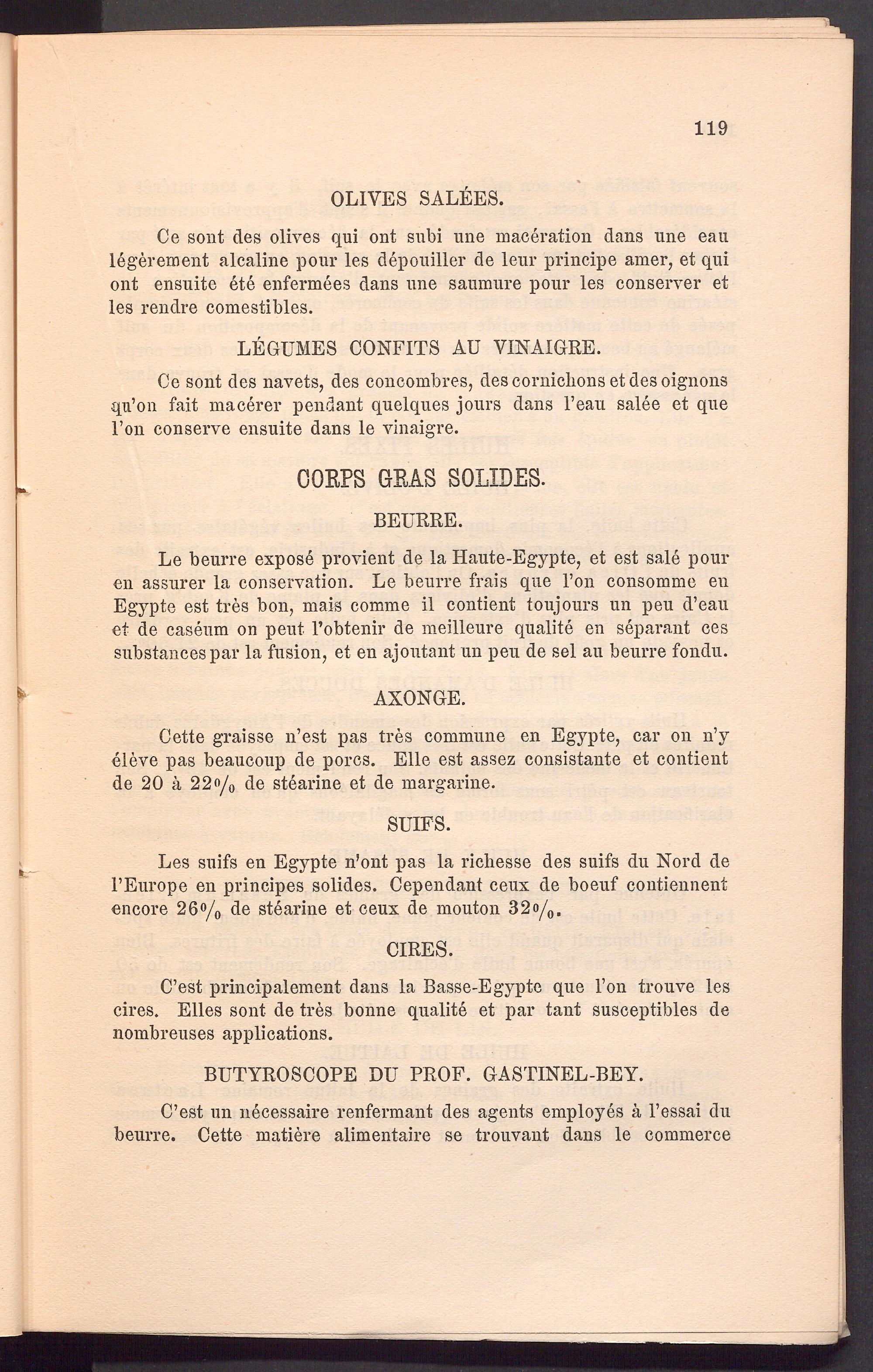 Cette graisse n’est pas tres commune en Egypte, car on n’y eleve pas beaucoup de pores. Elle est assez consistante et contient de 20 ä 22o/ 0 de Stearine et de margarine.