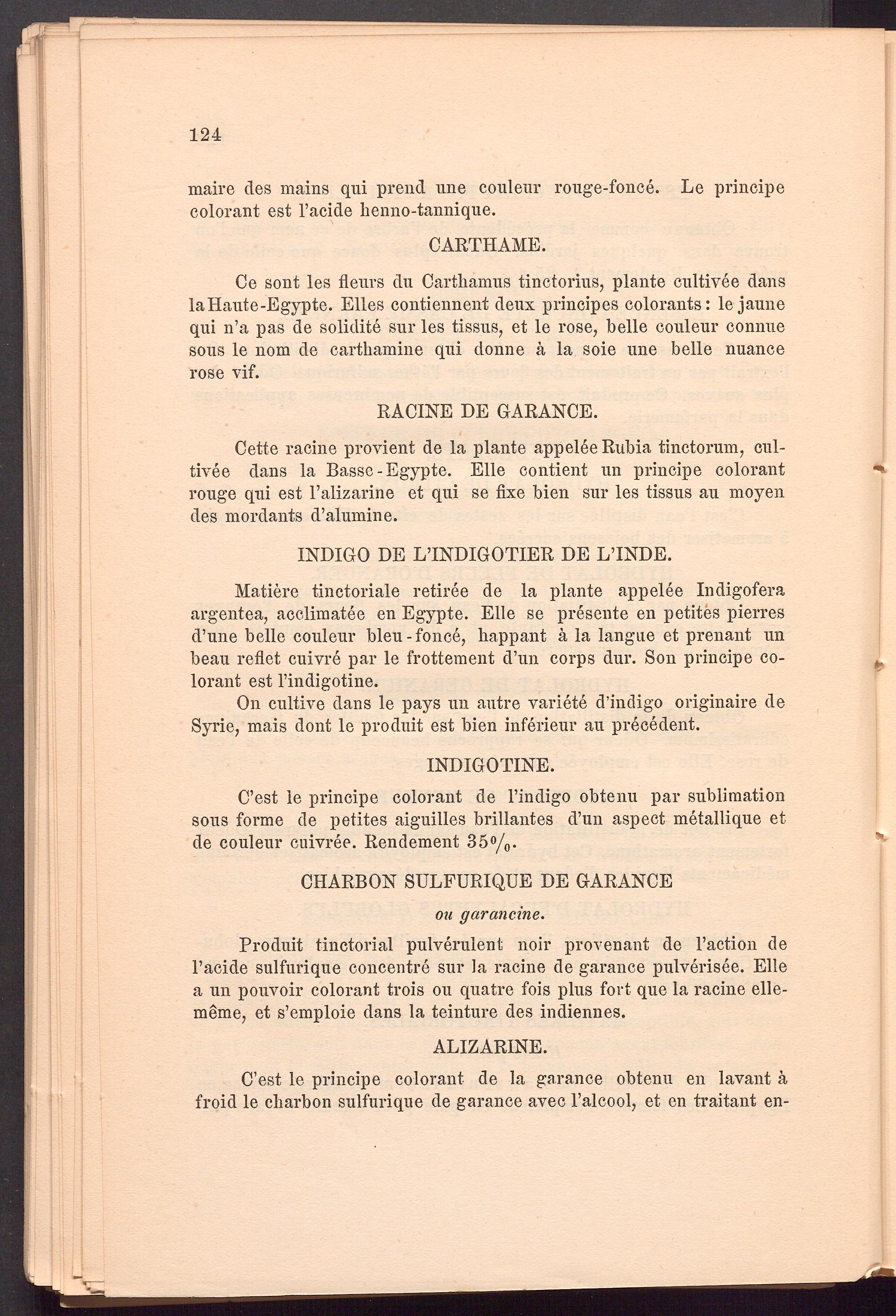 Ce sont les flenrs du Cartliamus tinctorius, plante cultivee dans la Haute-Egypte. Elles contiennent deux principes colorants: le jaune qui n’a pas de solidite sur les tissus, et le rose, belle couleur connue sous le nom de carthamine qui donne ä la soie une belle nuance rose vif.