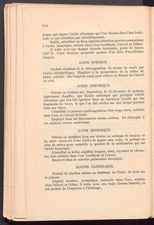 drique qui separe l’acide sebacique que Ton dissout dans l’eau bouil- lante et qui eristallise par refroidissement.