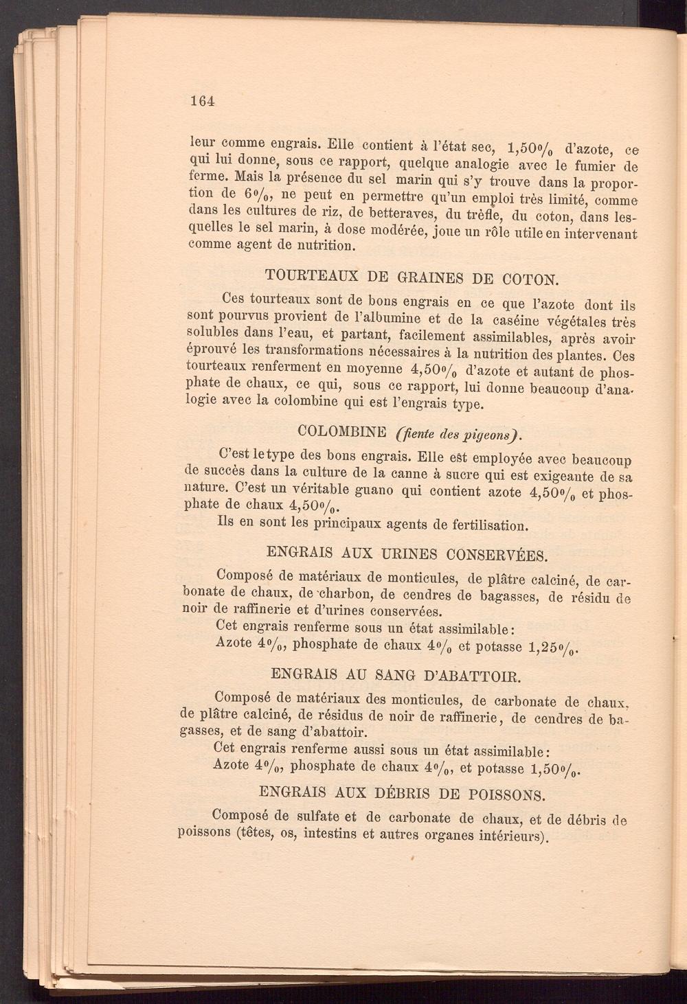 C’est le type des bons engrais. Elle eSt employee avec beaucoup de succes dans la culture de la canne ä sucre qui est exigeante de sa nature. C’est un veritable guano qui contient azote 4,50°/ 0 et phosphate de chaux 4,50o/ 0 .