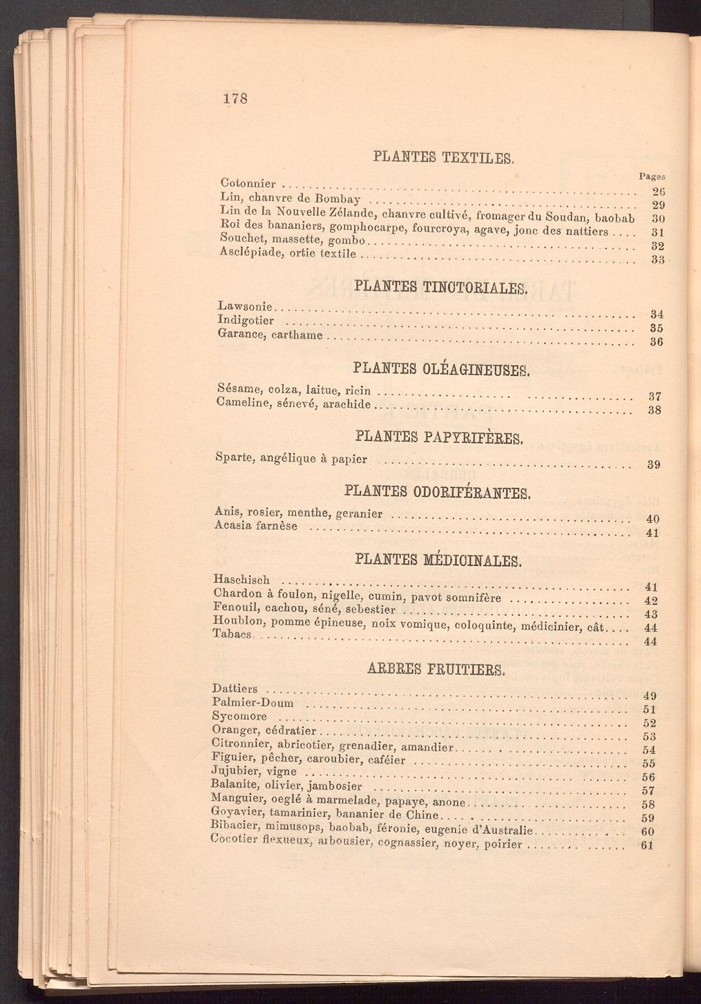 Lin de la Nouvelle Zelande, chanvre cultive, fromager du Soudan, baobab 30 Eoi des bananiers, gomphocarpe, fourcroya, agave, jonc des nattiers .... 31
