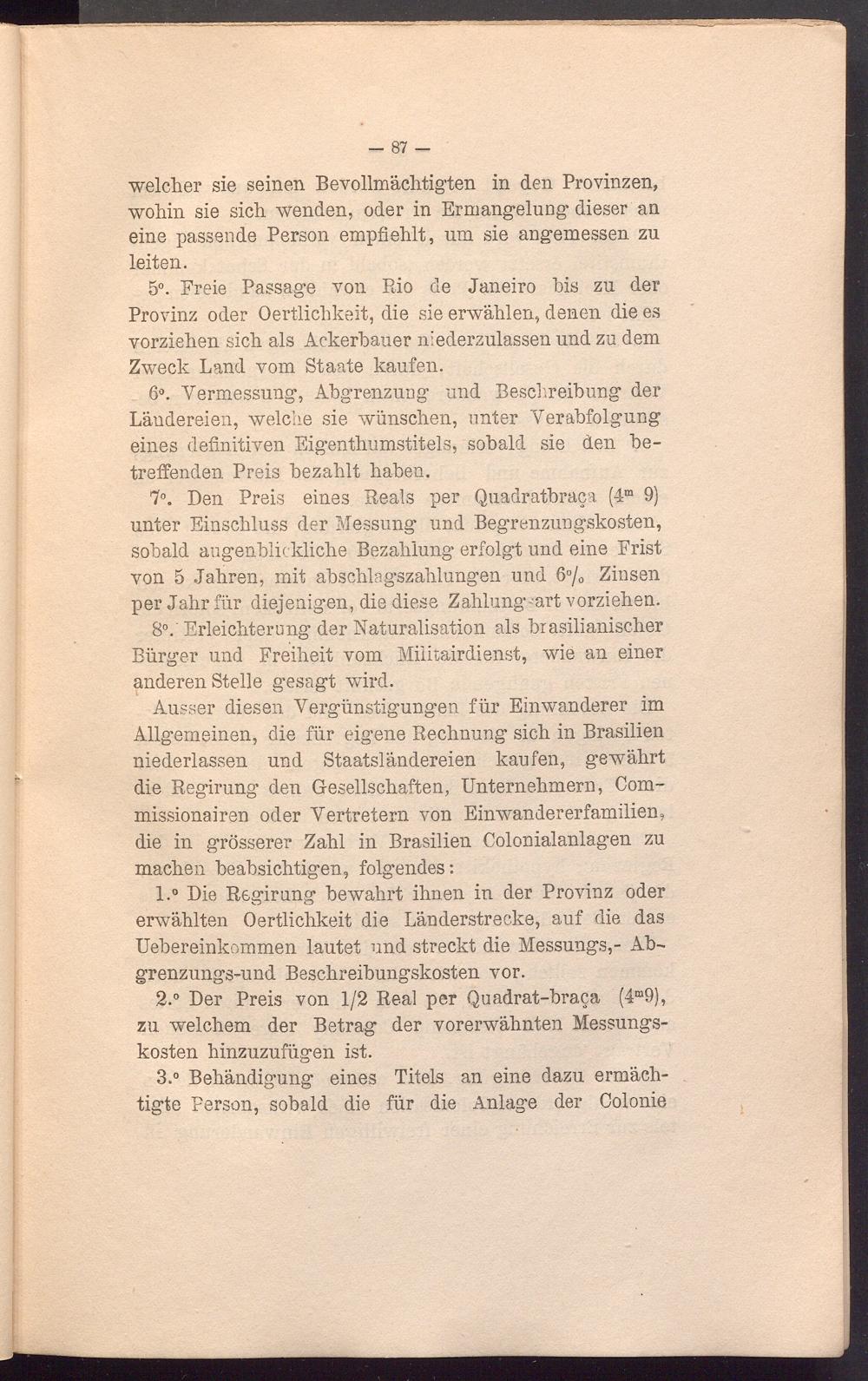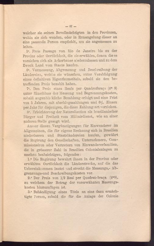 8°.' Erleichterung der Naturalisation als brasilianischer Bürger und Freiheit vom Militairdienst, wie an einer anderen Stelle gesagt wird.