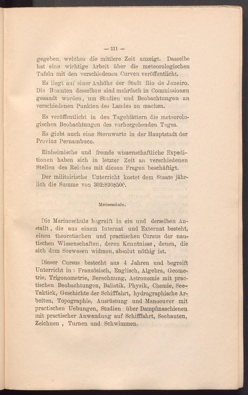 Die Marineschule begreift in ein und derselben Anstallt , die aus einem Internat und Externat besteht, einen theoretischen und practischen Cursus der nautischen Wissenschaften, deren Kenntnisse, denen, die sich dem Seewesen widmen, absolut nöthig ist.