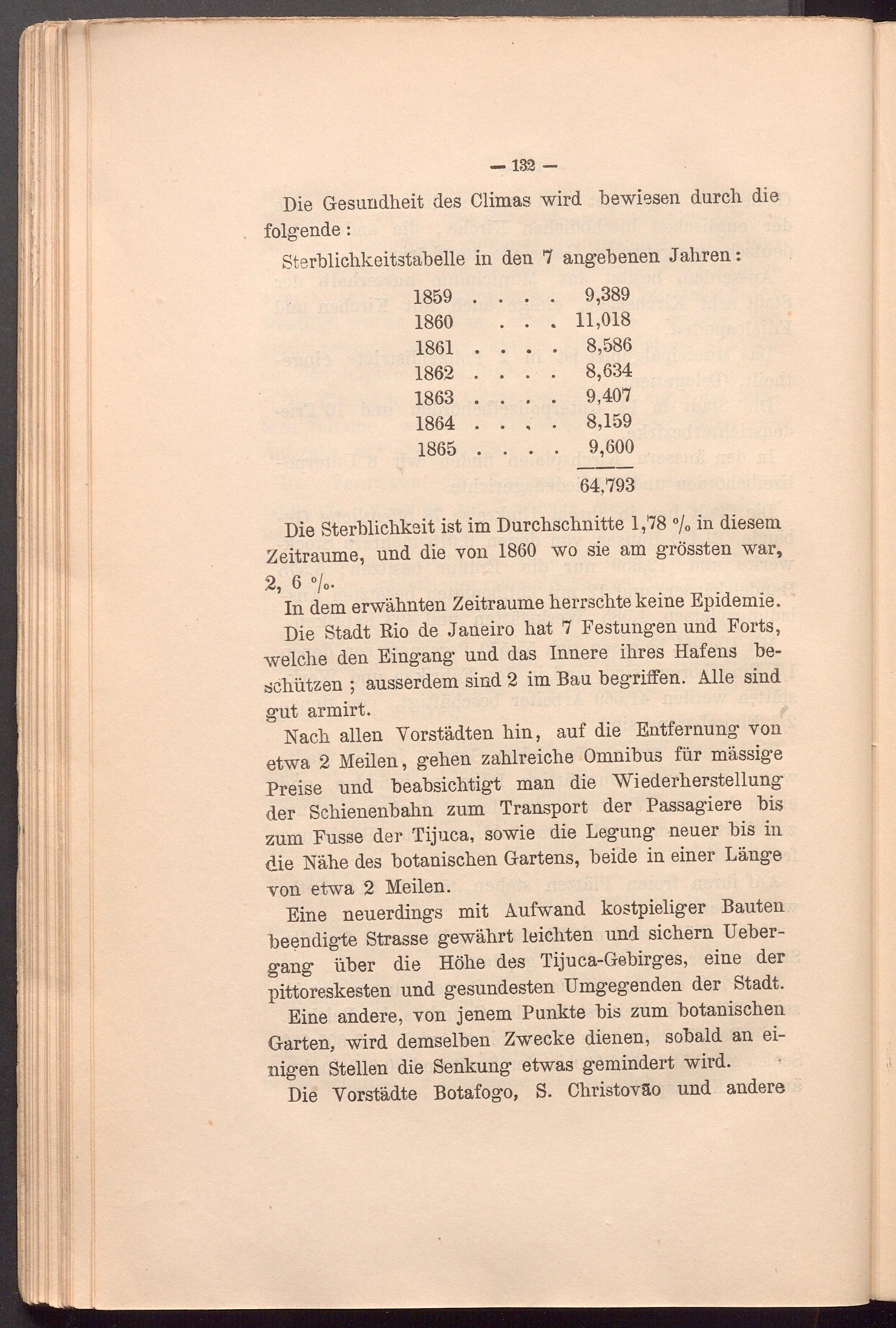 Eine neuerdings mit Aufwand kostpieliger Bauten beendigte Strasse gewährt leichten und sichern Ueber- gang über die Höhe des Tijuca-Gebirges, eine der pittoreskesten und gesundesten Umgegenden der Stadt.