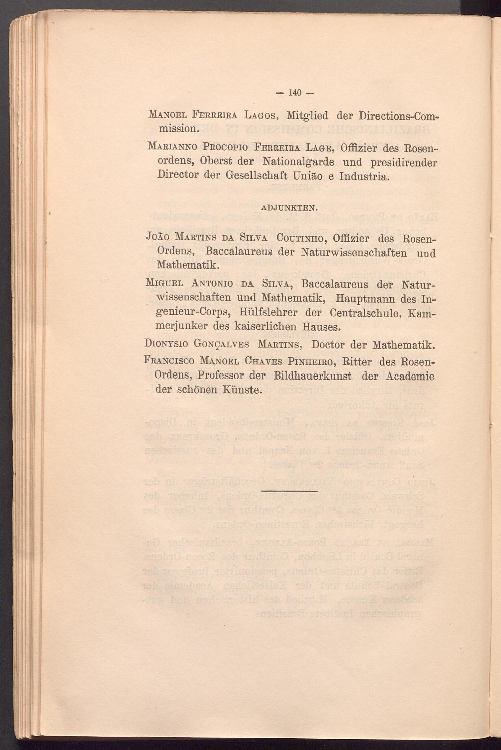 Miguel Antonio da Silva, Baccalaureus der Naturwissenschaften und Mathematik, Hauptmann des Ingenieur-Corps, Hülfslehrer der Centralschule, Kammerjunker des kaiserlichen Hauses.