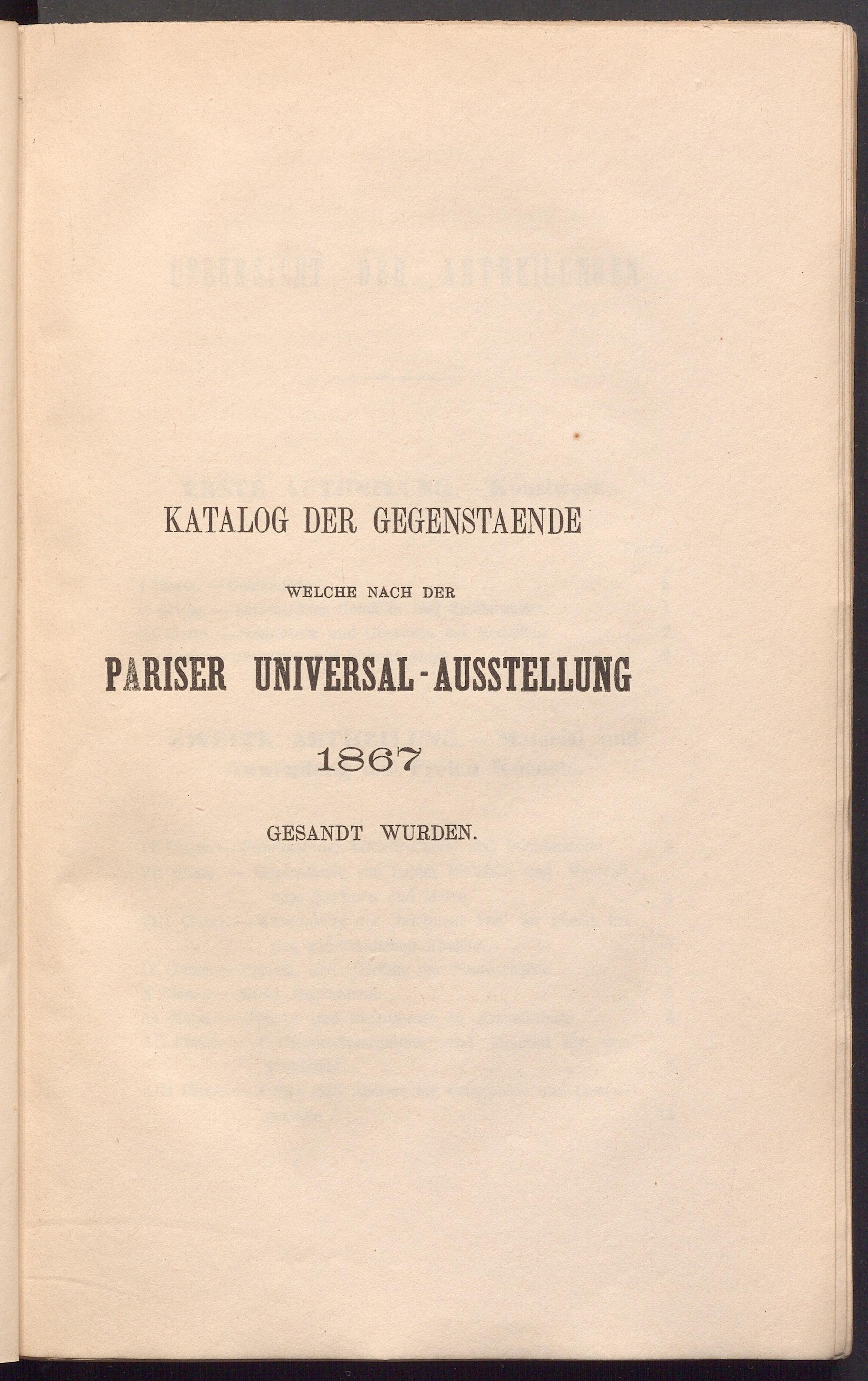 Katalog der Gegenstaende welche nach der Pariser Universal-Ausstellung 1867 gesandt wurden