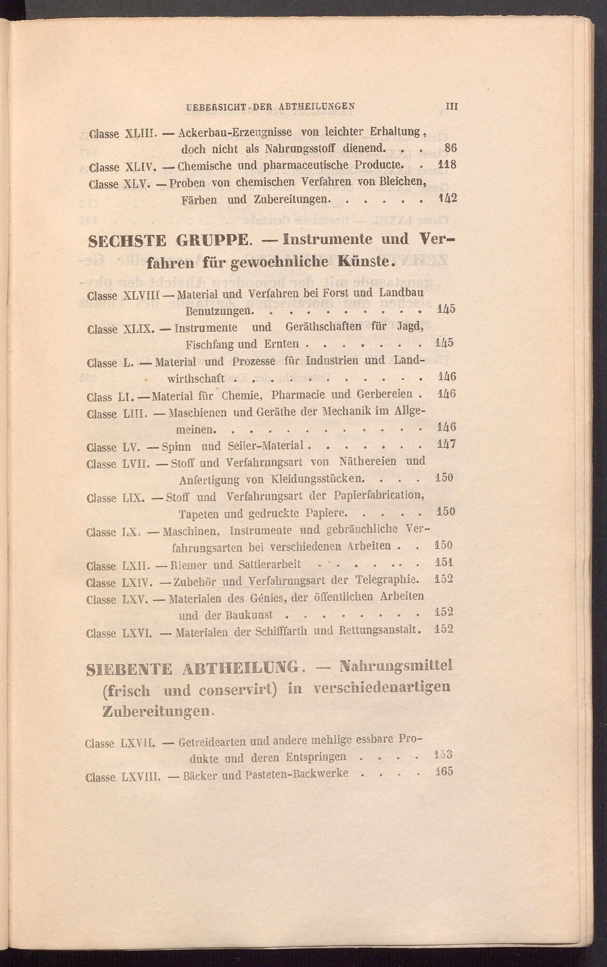 Classe LXiV. —Zubehör und Verfahrungsart der Telegraphie. 152 Classe LXV. — Materialen des Génies, der öffentlichen Arbeiten