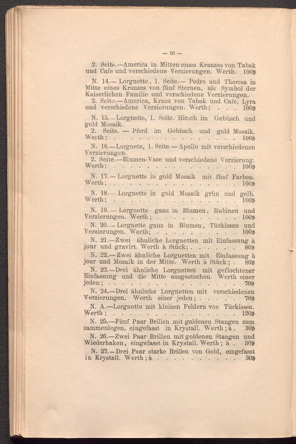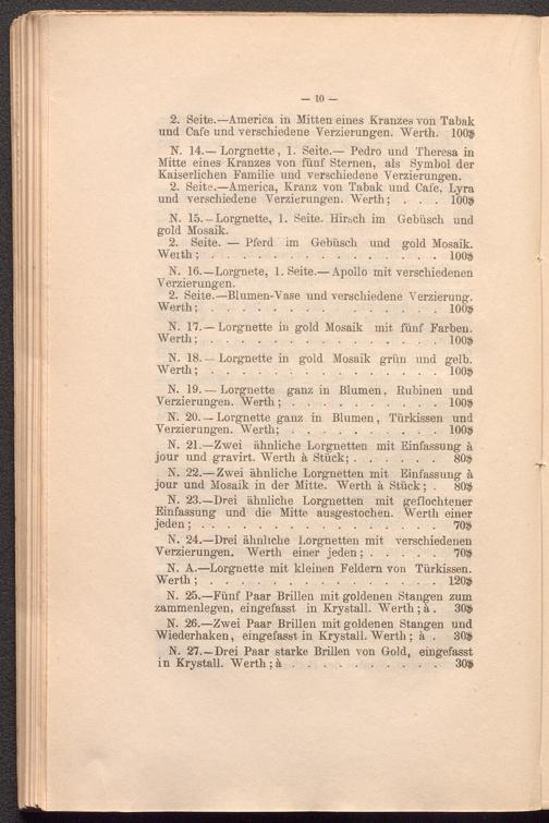 N. 27.—Drei Paar starke Brillen von Gold, eingefasst in Krystall. Werth; ä . . . . .30#