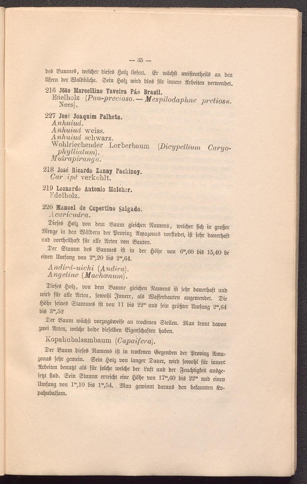 Ser Saum btefes Mantens ift in troefenen ©egenben ber probing 2tma= gonaS fet;r gemein, ©ein |jot§ bon tanger Sauer, mirb fomotft für innere Arbeiten benutzt ak für fotc^e wetdfe ber Saft xtnb ber geudjtigfeit au§ge= fetjt fmb. ©ein ©tarnnt erreicht eine .fjötfe bon 17“,60 bis 22” unb einen Umfang bon l m ,10 bk l m ,54. Man getbinnt barauS ben befamtten ,fo= patjubatfam.