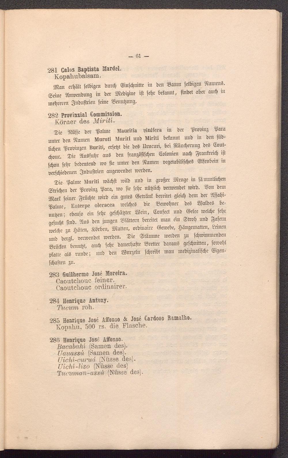 Die fftüffe ber ^Saïme Mauritia tiinifera in ber ißrotiiuj 'ftera unter ben tarnen Murnti Muriti uitb Miriti befannt nnb in ben fiib= liefert ißrotiinjeit Buriti, enfelît bie be§ Urncuri, bei fRändfermtg beS ßout= rf)ouc. Die Shtéfnffr and beit frangöftfc^en (Montett uad) fyranfreidj ift fdpn )ei)r bebeutenb mo fie unter ben tarnen ü eg et ab itif cf) e § (Hfeitbein in tietfdjiebetten ^nbuftrien angemenbet merben.
