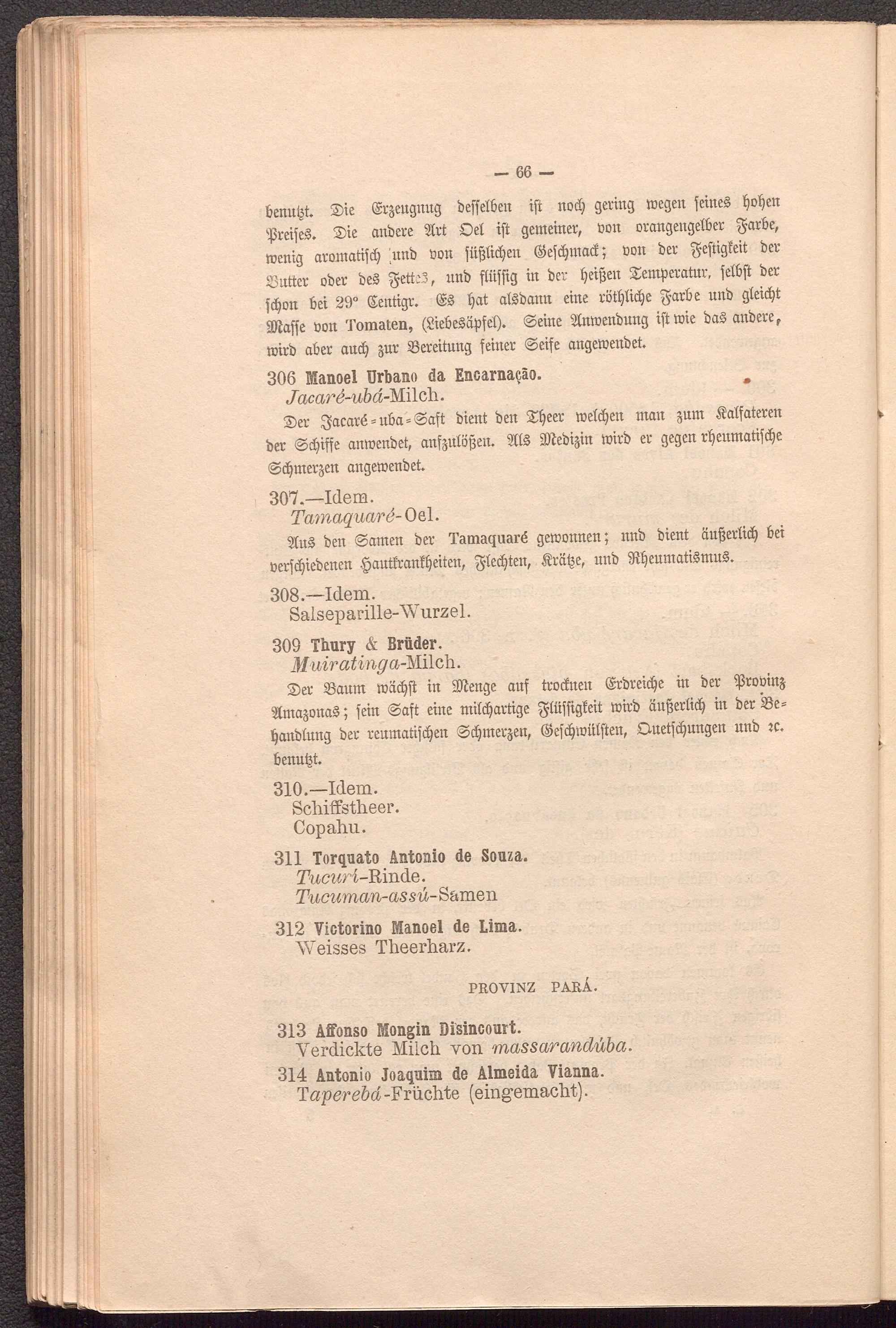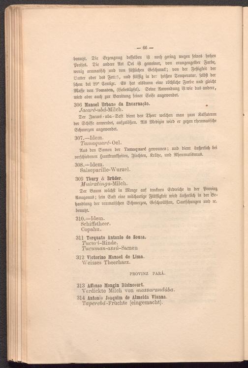 ©er SSaum wäcpft in Stenge auf trocfnen Gcrbreicpe in ber ißrobinj ImapnaS; fein ©aft eine mitcpartige ^tüfftgfeit wirb aufjerticp in ber iße= panblung ber renmatijcpen ©cpmer^eu, ©efcpwütften, Ouetfcpungen unb ?c. benubt.