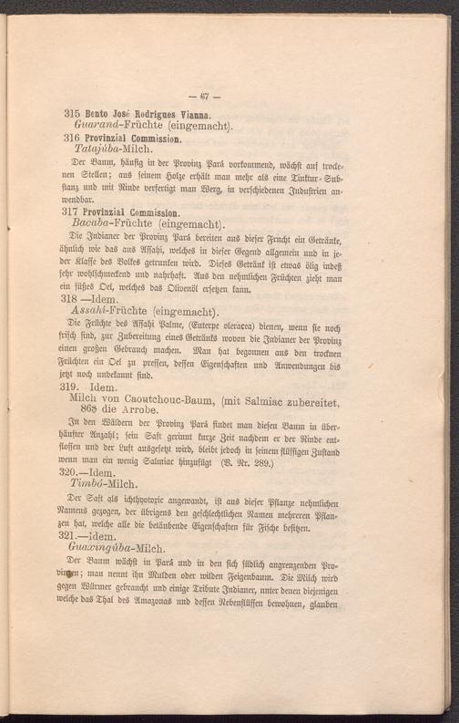 Sie Snbianer ber ^roüinj ißarä bereiten aus biefer ^ruc^t ein (Getränte, ät)tt(id) wie baS aus 2tffaf)i, wetdfeg in biefer ©egenb allgemein unb in je* ber klaffe be§ Sollet getrunlen toirb. SiefeS ©etränf ift ettoaS oüg htbefj fetjr toofytfdjntedcnb unb naf)rt)aft. lug ben netjmüdjen Früdjten gie^t man ein füfjeS Det, toétcfjeS baS ©lioenüt erfe^en !ann.