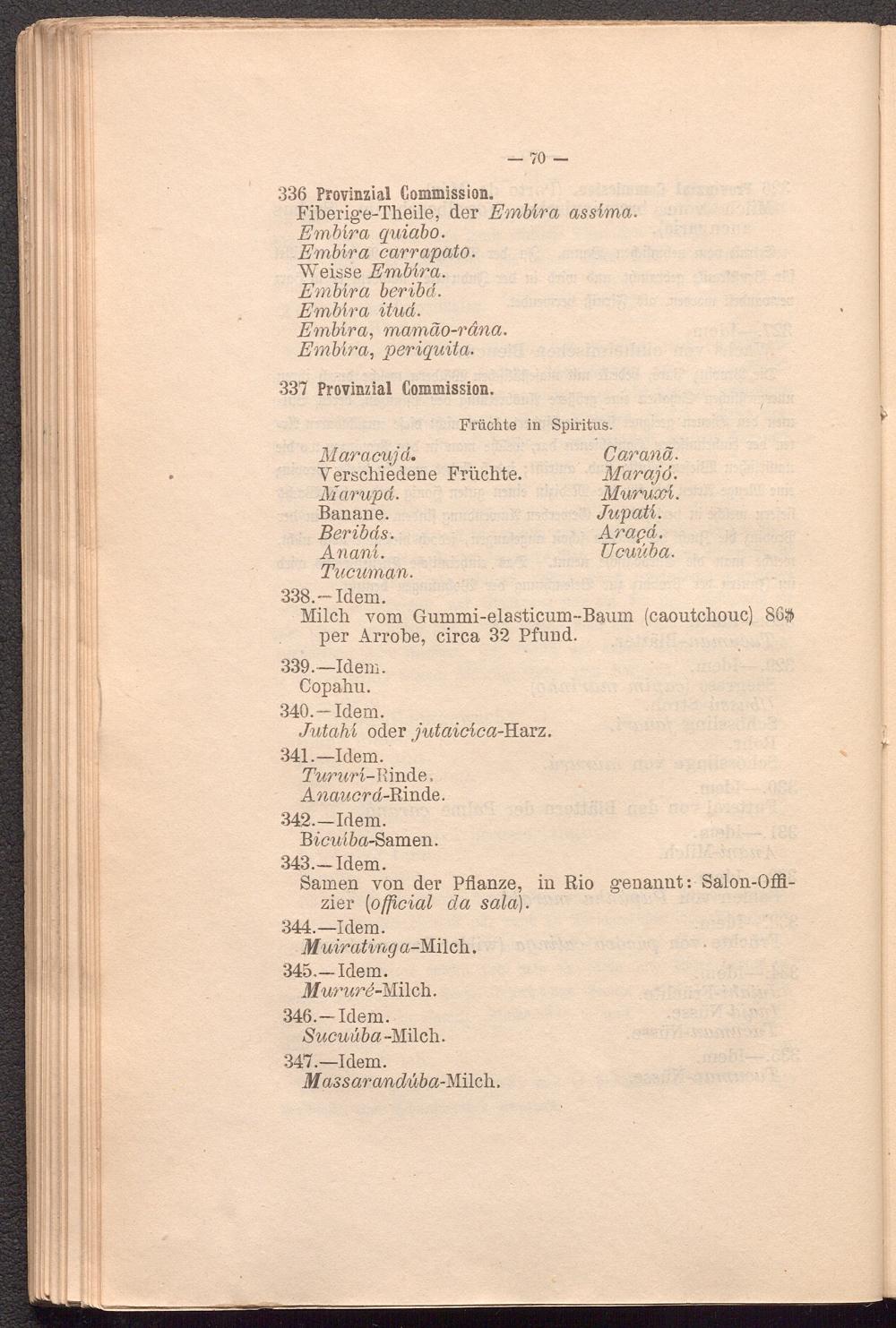 Milch vom Gummi-elasticum-Bainn (caoutchouc) 86$ per Arrobe, circa 32 Pfund.