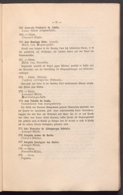 $ie Steifet) bed Sannt ed Mangabeira genannt (Hancornia specio.ia) bon ber gamife ber Apocincen giebt einen aufierorbentfict) feinen (Saoutdjouc, begegnet ihn aber bto§ aB ©ettenfjeit unb fdjont if)tt, fei e§ au§ $urd)l ba§ Seben ober ©auer biefed Saumes, beffen $rud)t aB Statjrungämittet fetjr gefd)at)t mirb, in ©efat)r ju bringen ober fei eS meit er nicht fo fjnuftcj aB bie anbern ©orten Seringeira gefunben toirb.