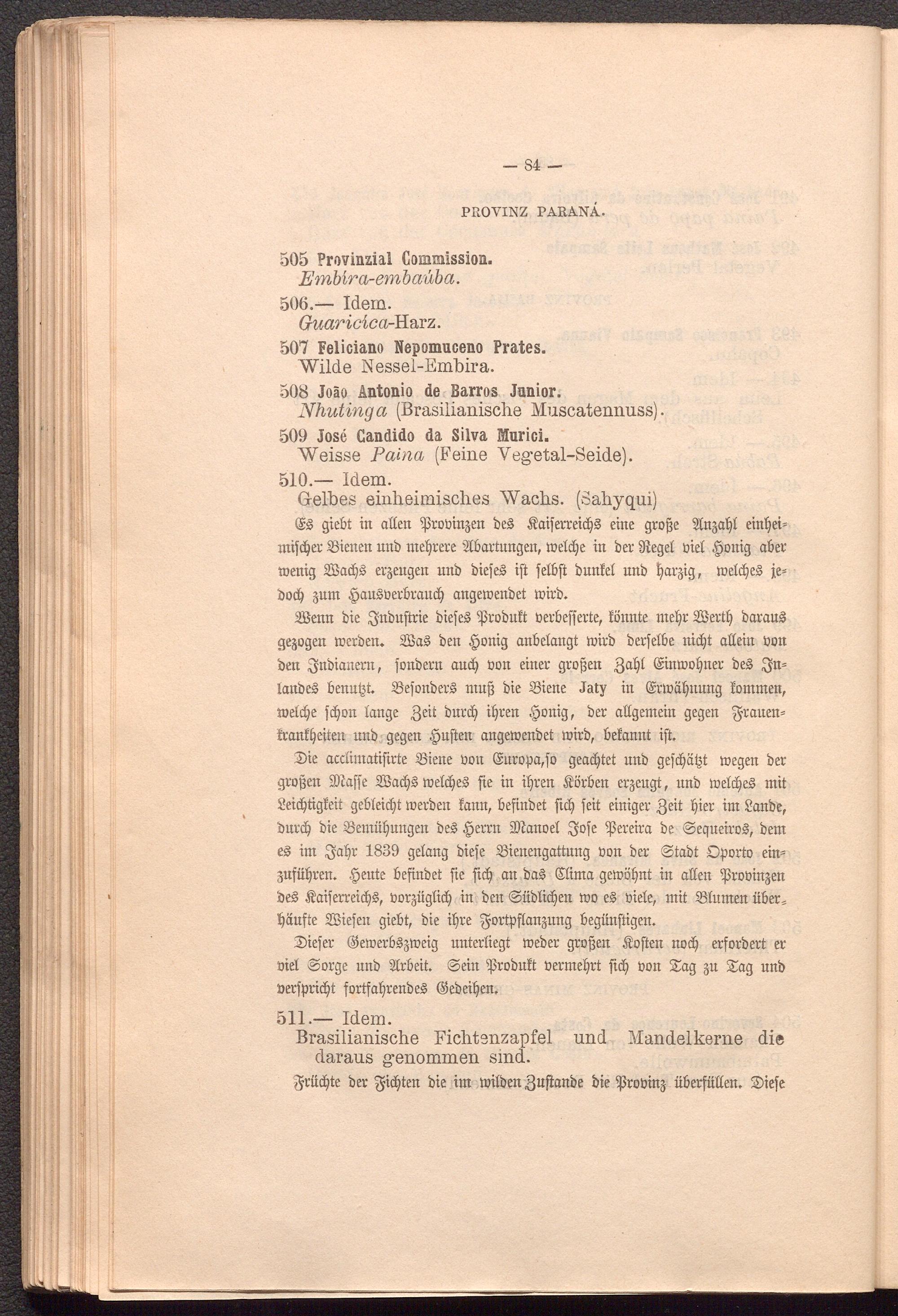 Oie aedimatifirte State oott ©uropa,fo geachtet unb gejcf;atjt wegen ber großen 2)1 affe SSadfd welcped fie in ipren Körben erzeugt, unb welcped mit Seicptigleit gebleicht werben famt, befinbet fiep jeit einiger Beit pier im Sanbe, bnrd) bie üSemüpungen bed §errn dJlattoel gofe ißereira be Sequcirod, bem ed im gapr 1839 gelang biefe Sienengattuug non ber Stabt Oporto ein- jufüptert. §eute befinbet fie fid) an bad ©lima gewöhnt in alien tproüingen bed Äaiferreicpd, oorjüglid) in ben Sübïicpen wo ed niete, mit Slitmert über* Ränfte Söiefen giebt, bie ipre gortpflanjung begünftigen.