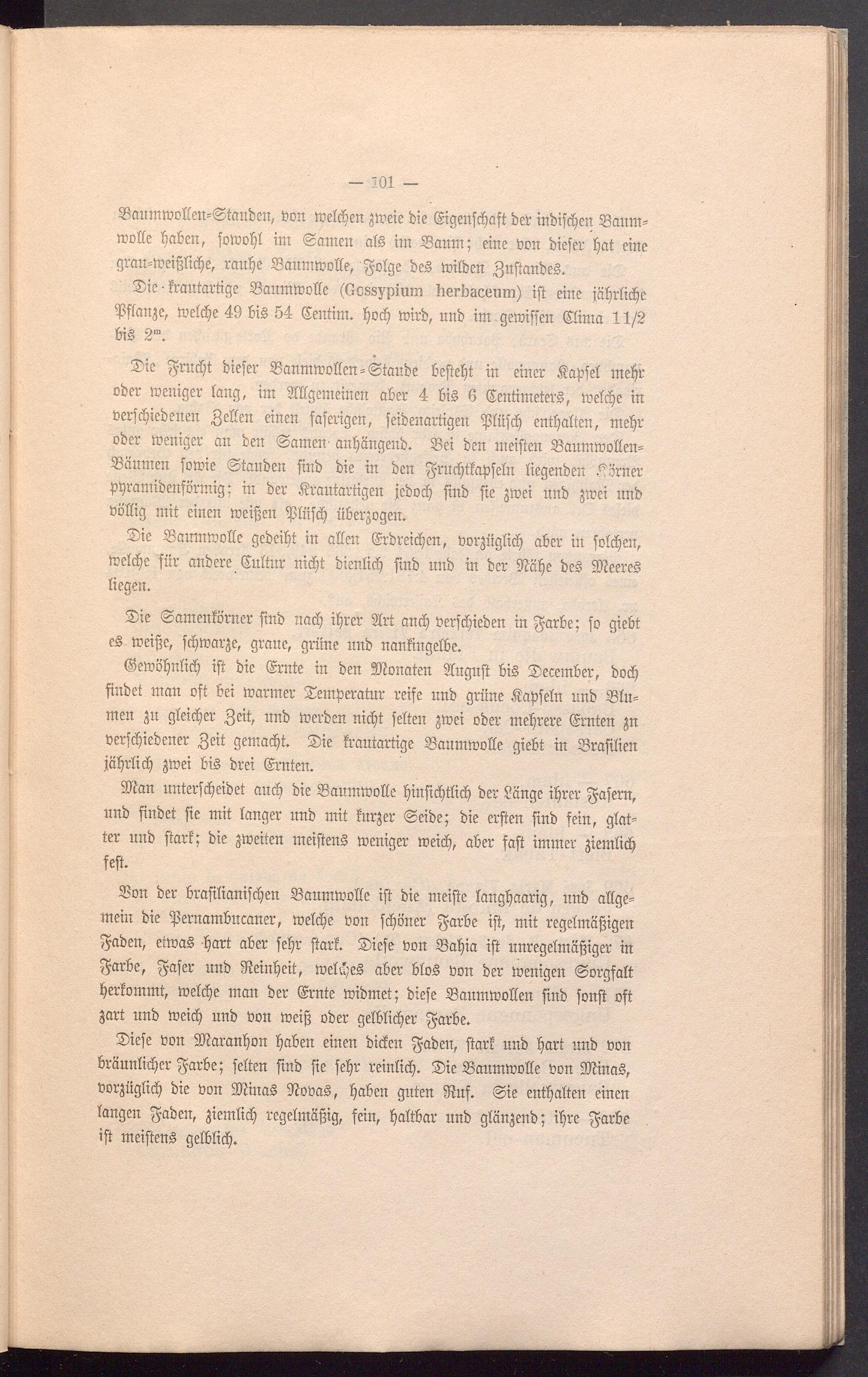 Son ber brafilianifcpen SaumwoIIe ift bie nteifte langpaarig, unb aüge= mein bie fSernambutaner, welcpe öon fdföner $ ar be iftf mit regelmäßigen fyaben, etwag part aber fepr ftarl. Tiefe öon Sapia ift unregelmäßiger in $arbe, fyafer unb fReinpeit, welcpeg aber blog öon ber wenigen ©orgfalt perlommt, welcpe man ber ©rate rnibmet; biefe Sanmwotten ftttb fonft oft jart unb weicfi unb öon weiß ober gelblicper fyarbe.