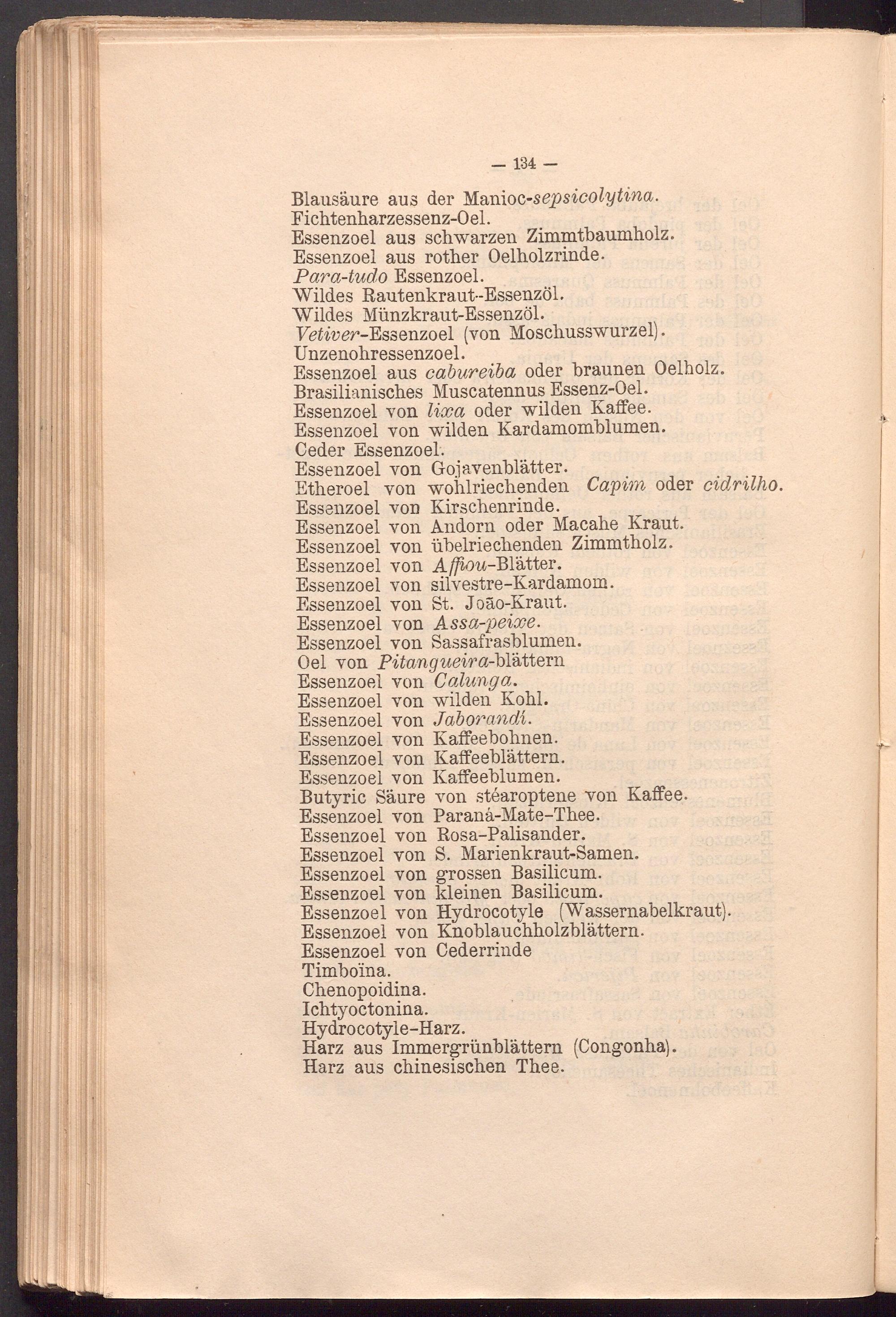 Blausäure aus der Manioc -sepsicolytina. Fichtenharzessenz-Oel.