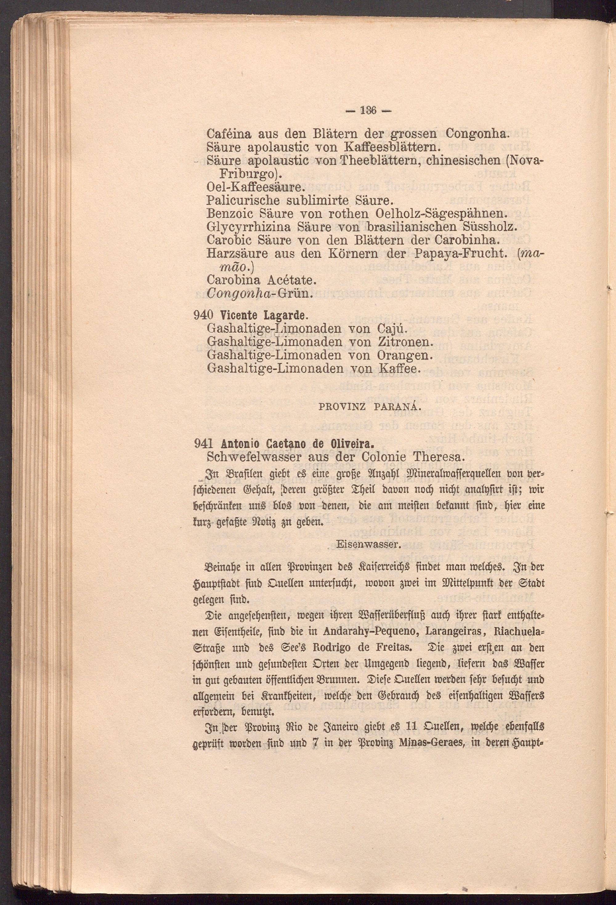2>ie angefebenften, toegen ihren Safferüberftufj and» ihrer part entsafte* nen ©ifentbeite, ftnb bie in Andarahy-Pequeno, Larangeiras, Riachuela* ©trafje nnb be§ @ee’§ Rodrigo de Freitas. Sie gtüei erften an ben fdjönften nnb gefunbefien Orten ber Umgegenb liegenb, liefern ba3 Söaffer tn gut gebauten öffentlichen Brunnen. Siefe Duetten werben feljr befugt nnb allgemein bei Är auf beiten, welche ben ©ebraudb be§ eifenbattigen Saffer§ erforbern, benu^t.