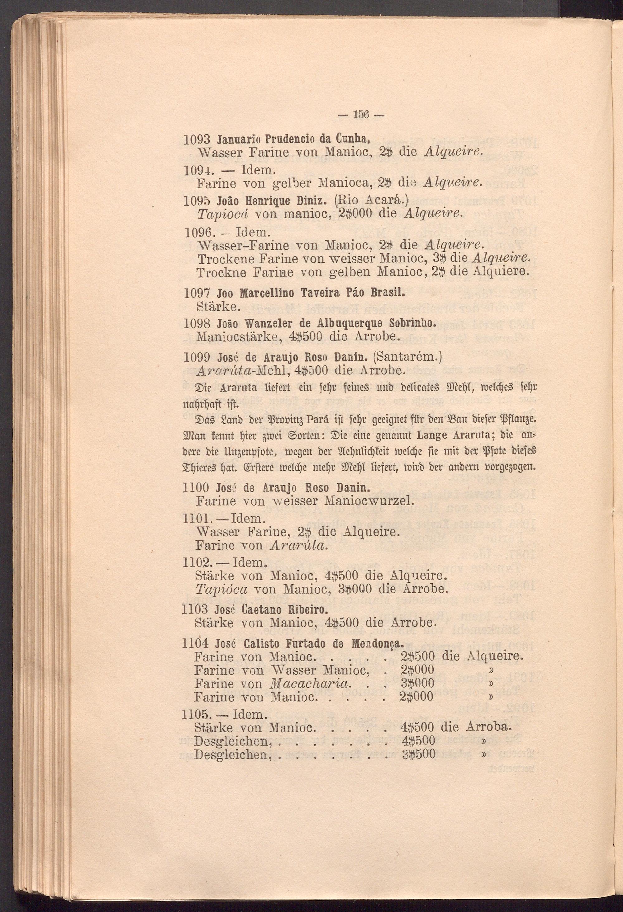 Wasser-Farine von Manioc, 2$ die Alqueire. Trockene Farine von weisser Manioc, 3$ die Alqueire. Trockne Farine von gelben Manioc, 2$ die Alquiere.
