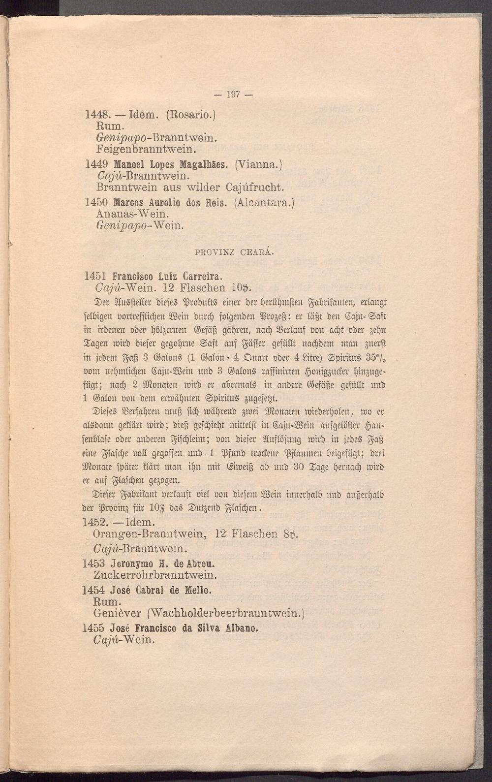 1449 lanoel Lopes Magalbäes. (Yianna.) Ca/u-Branntwein.