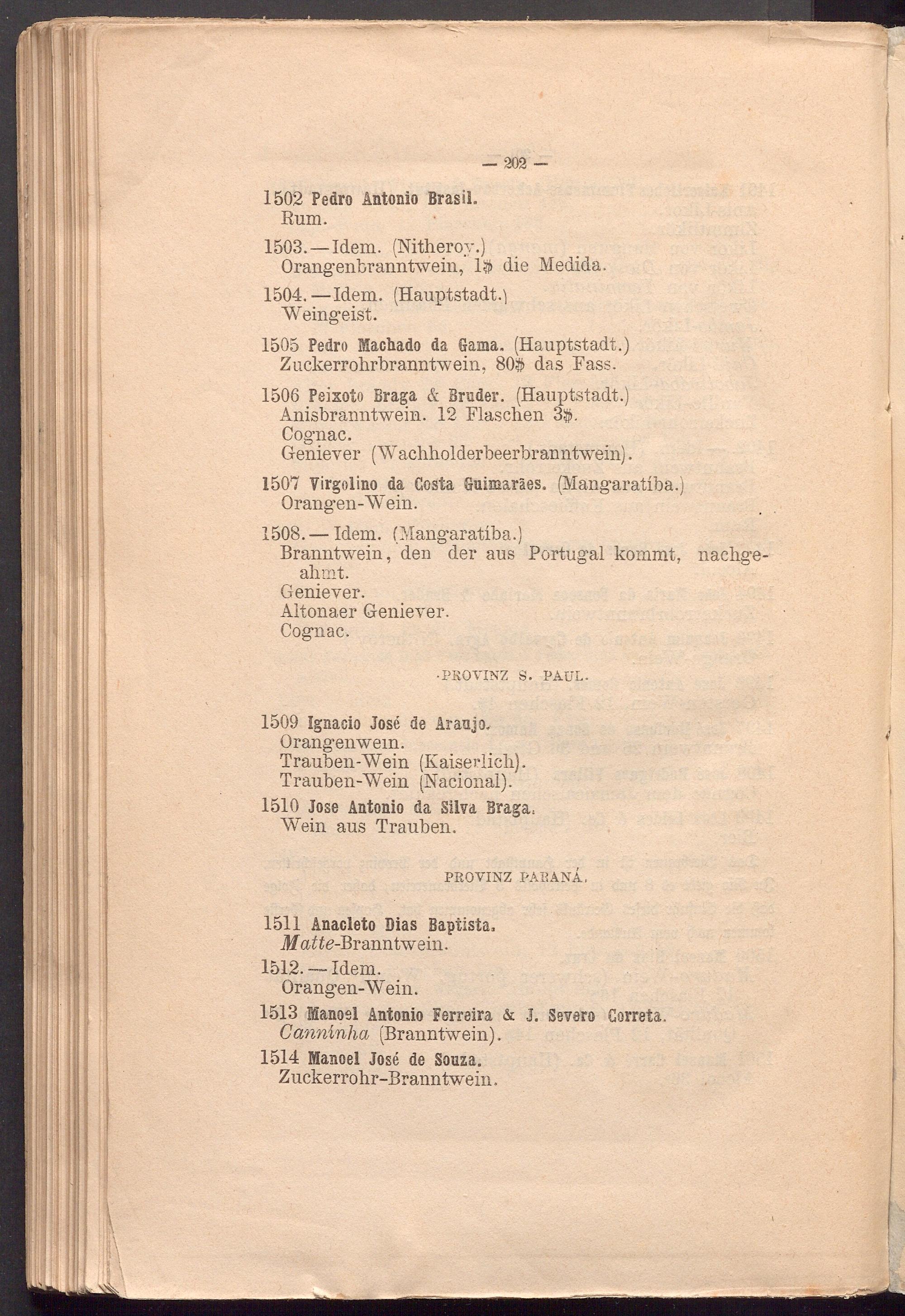 1514 Manoel José de Souza. Zuckerrohr-Branntwein.