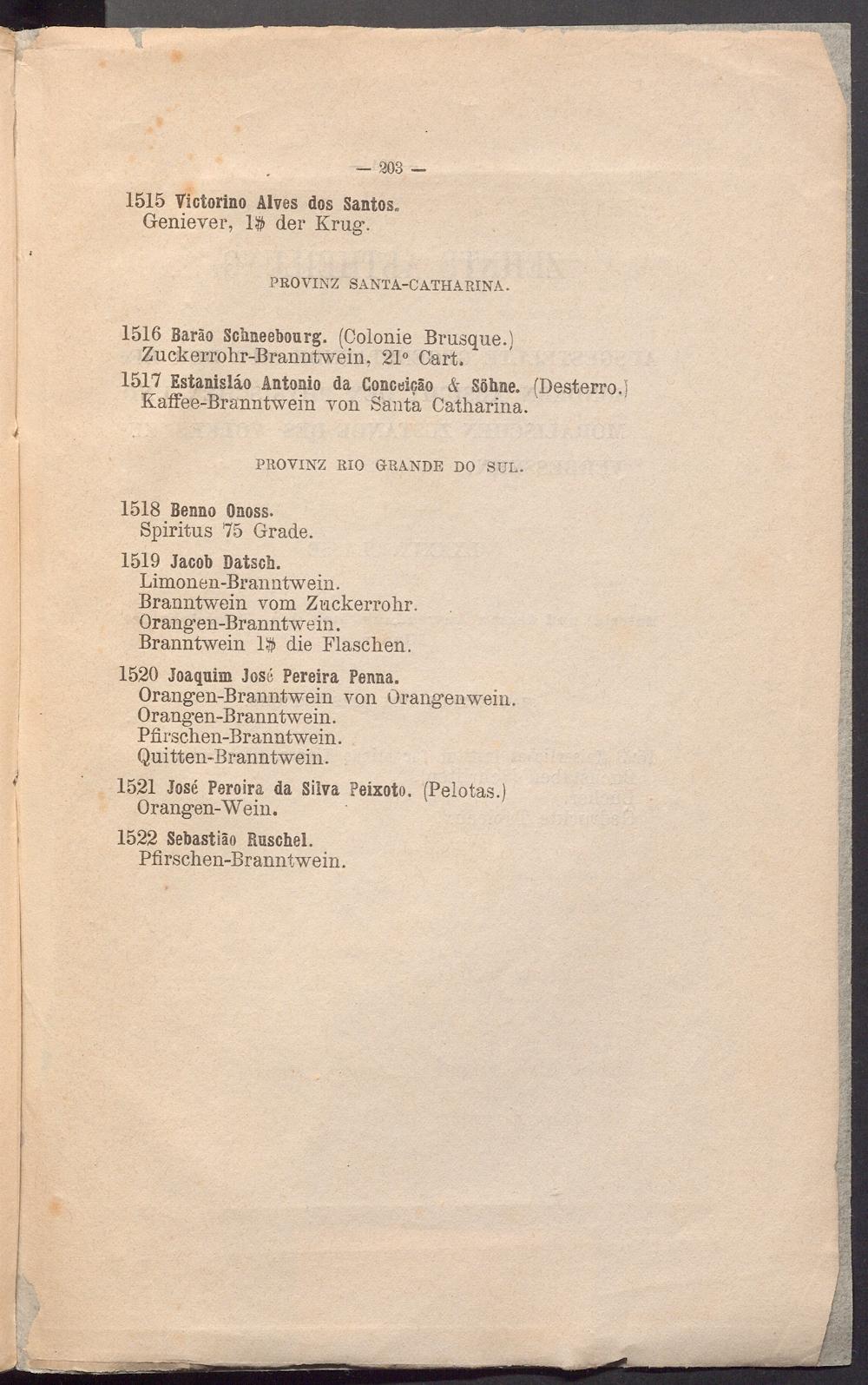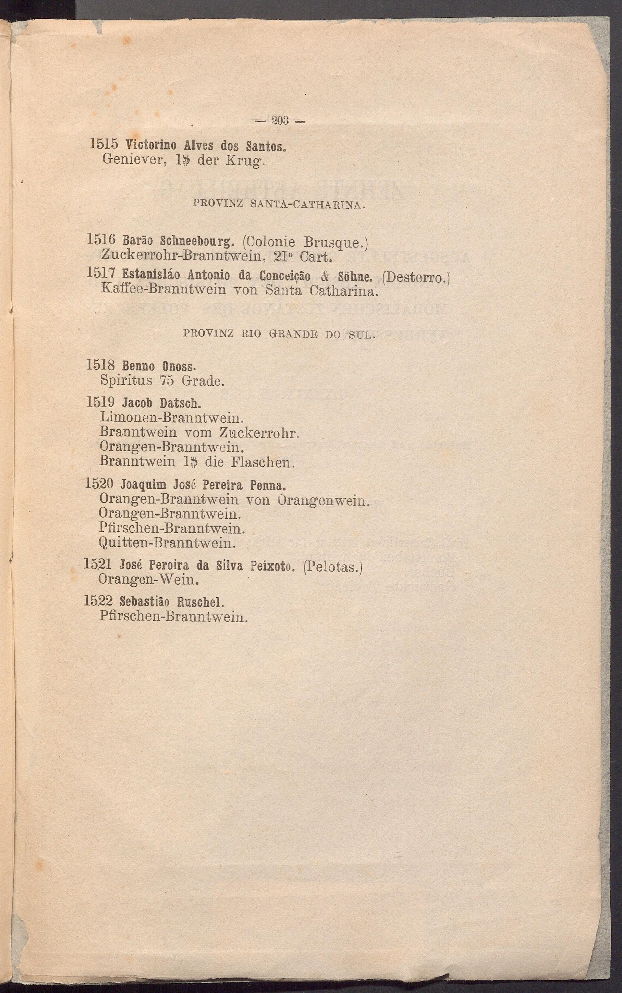 1517 Estanislâo Antonio da Gonceiçâo & Söhne. (Desterro.ï Kaffee-Branntwein von Santa Catharina.