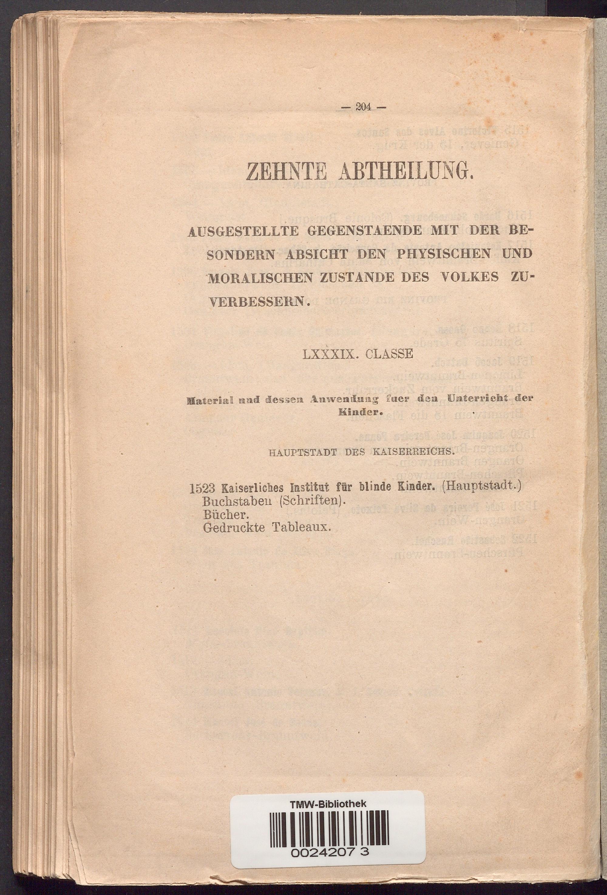 1523 Kaiserliches Institut für blinde Kinder. (Hauptstadt.) Buchstahen (Schriften).