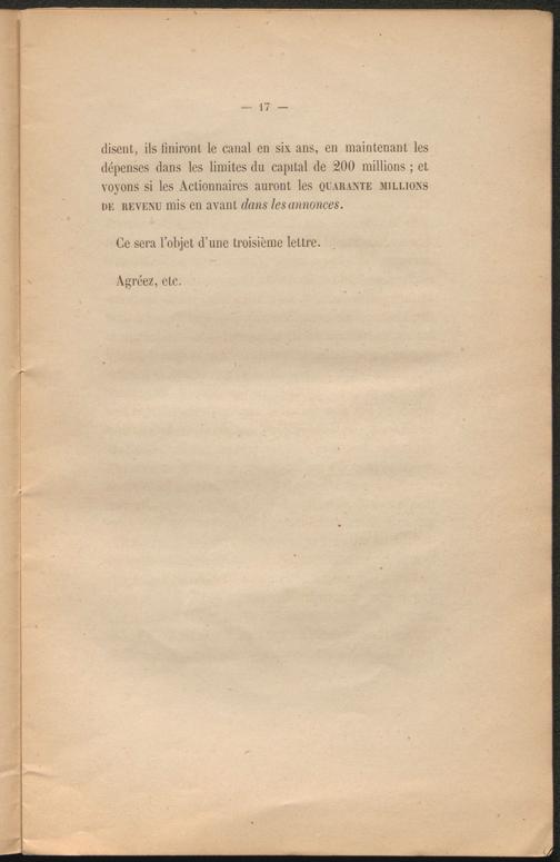 disent, ils finiront le canal en six ans, en maintenant les dépenses dans les limites du capital de 200 millions ; et voyons si les Actionnaires auront les quarante millions de revenu mis en avant dans les annonces.