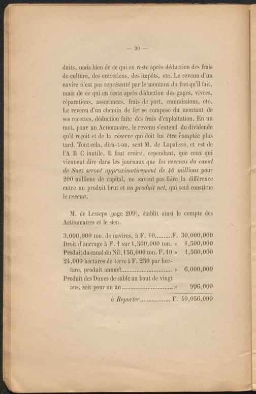 M. de Lesseps (page 209), établit ainsi le compte des Actionnaires et le sien.
