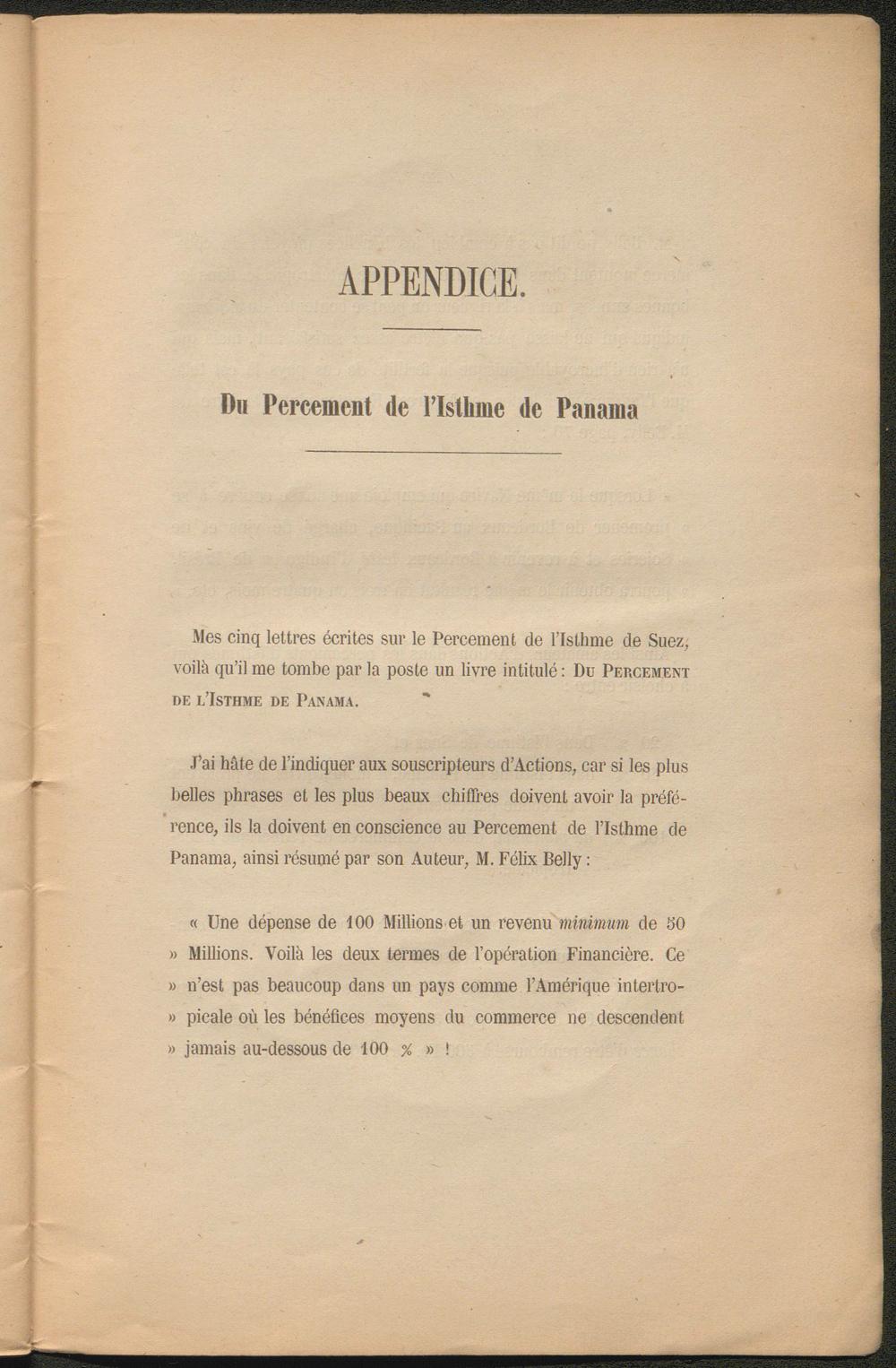 Mes cinq lettres écrites sur le Percement de l’Isthme de Suez, voilà qu’il me tombe par la poste un livre intitulé : Du Percement de l’Isthme de Panama.