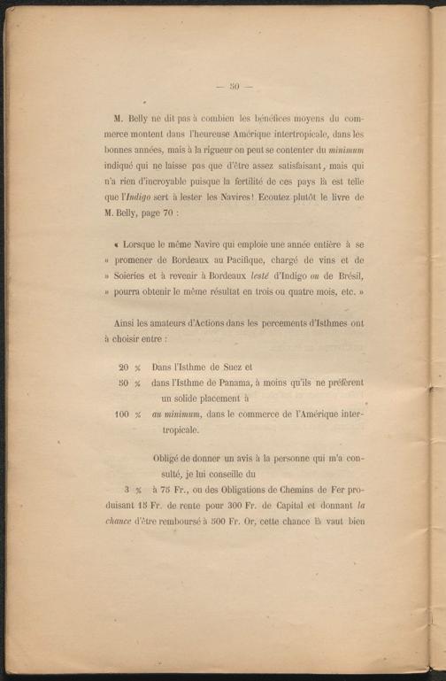 « Lorsque le même Navire qui emploie une année entière à se » promener de Bordeaux au Pacifique, chargé de vins et de » Soieries et à revenir à Bordeaux lesté d’indigo ou de Brésil, » pourra obtenir le même résultat en trois ou quatre mois, etc. »