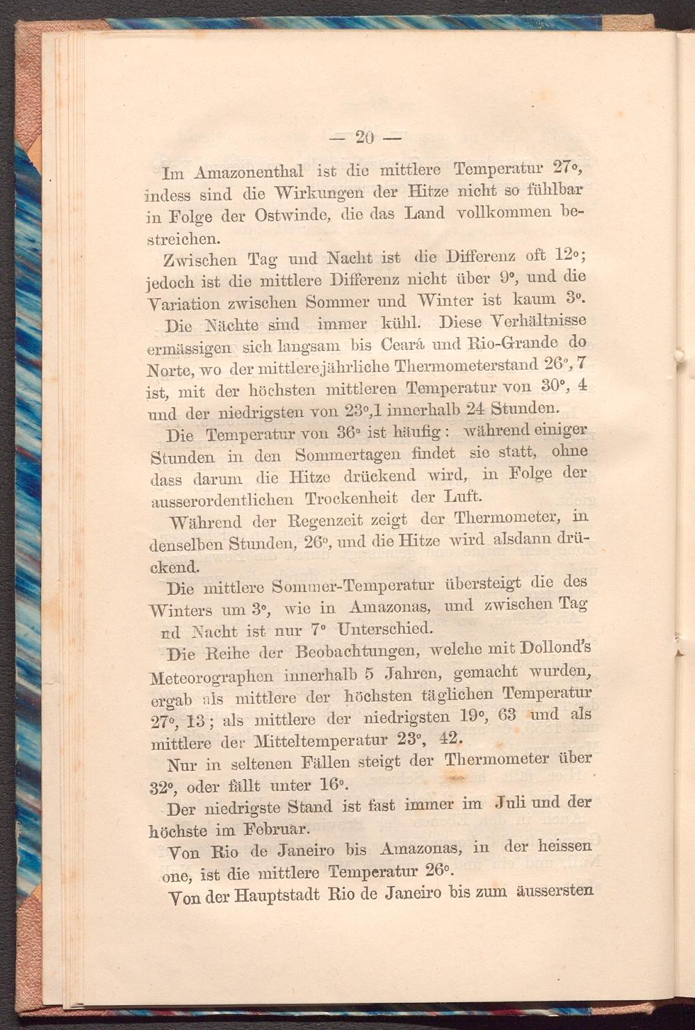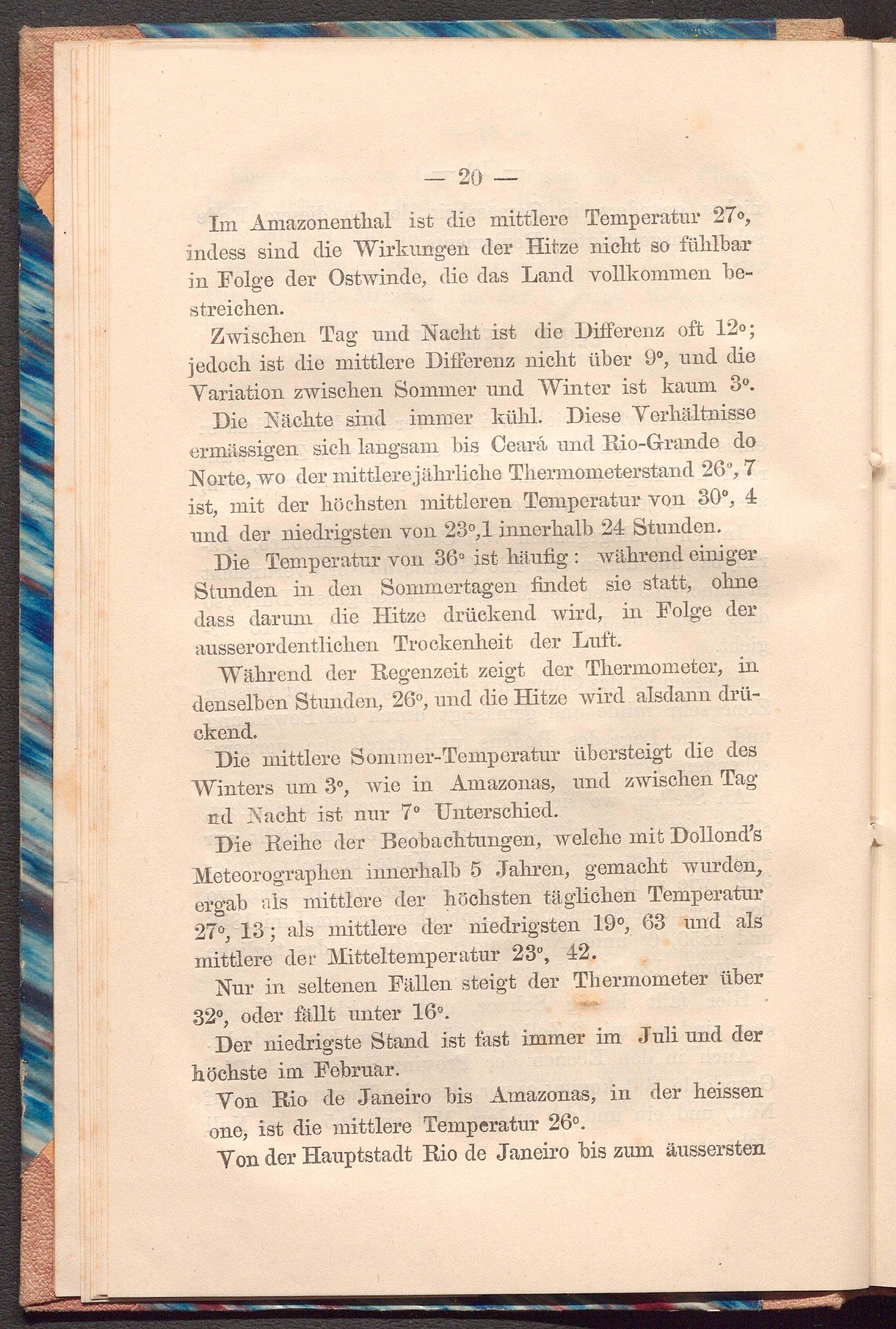 Die mittlere Sommer- Temperatur übersteigt die des Winters um 30, wie in Amazonas, und zwischen Tag nd Nacht ist nur 7° Unterschied.