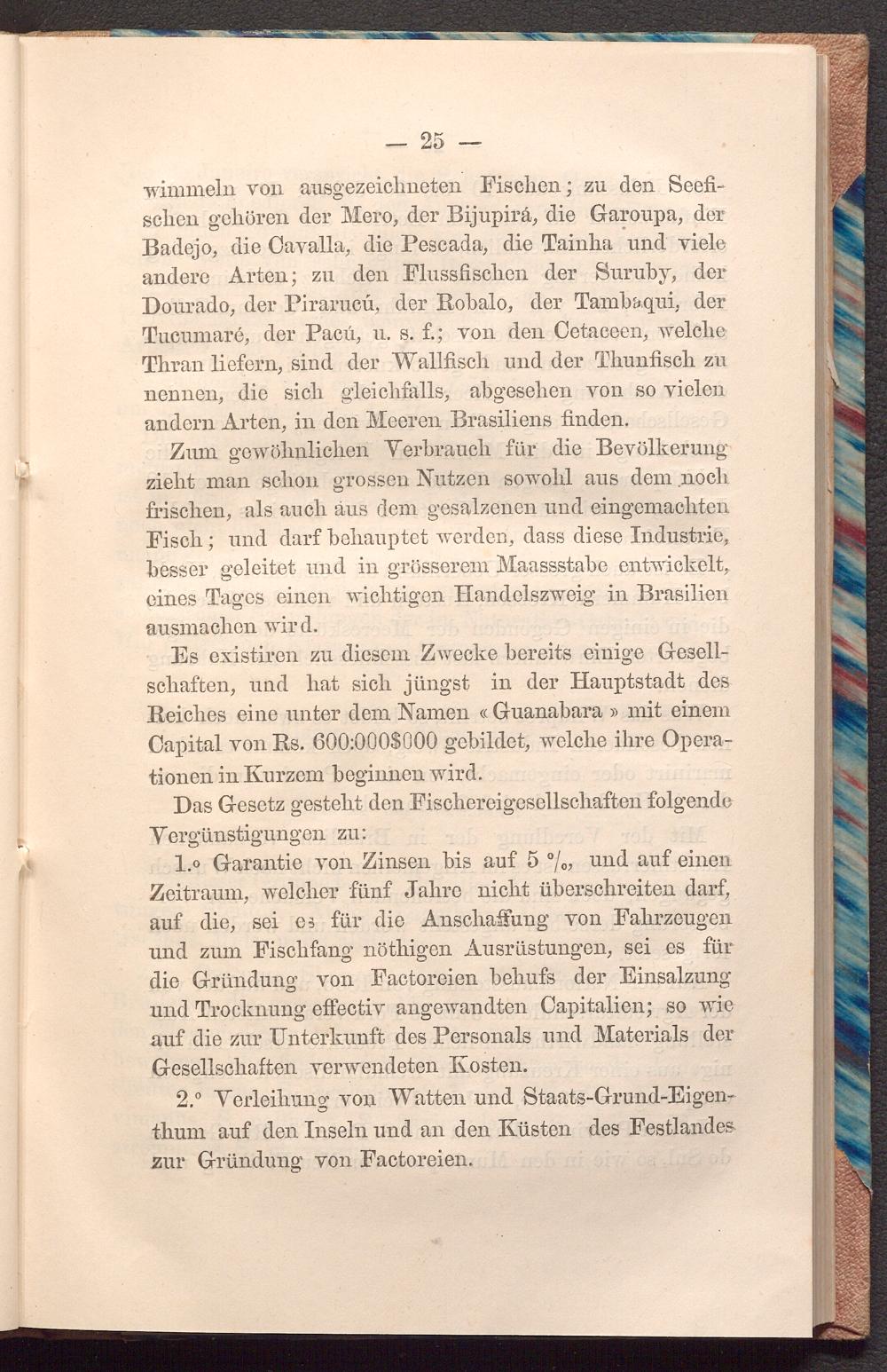 Es existiren zu diesem Zwecke bereits einige Gesellschaften, und hat sich jüngst in der Hauptstadt des Reiches eine unter dem Namen« Guanabara» mit einem Capital von Rs. 600: 000$ 000 gebildet, welche ihre Operationen in Kurzem beginnen wird. robo inter
