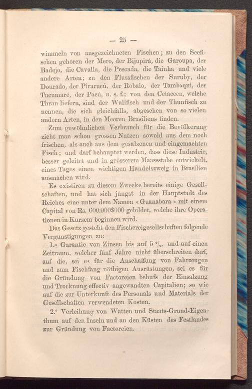 Zum gewöhnlichen Verbrauch für die Bevölkerung zieht man schon grossen Nutzen sowohl aus dem noch frischen, als auch aus dem gesalzenen und eingemachten Fisch; und darf behauptet werden, dass diese Industrie, besser geleitet und in grösserem Maassstabe entwickelt, eines Tages einen wichtigen Handelszweig in Brasilien ausmachen wird. nobaogo