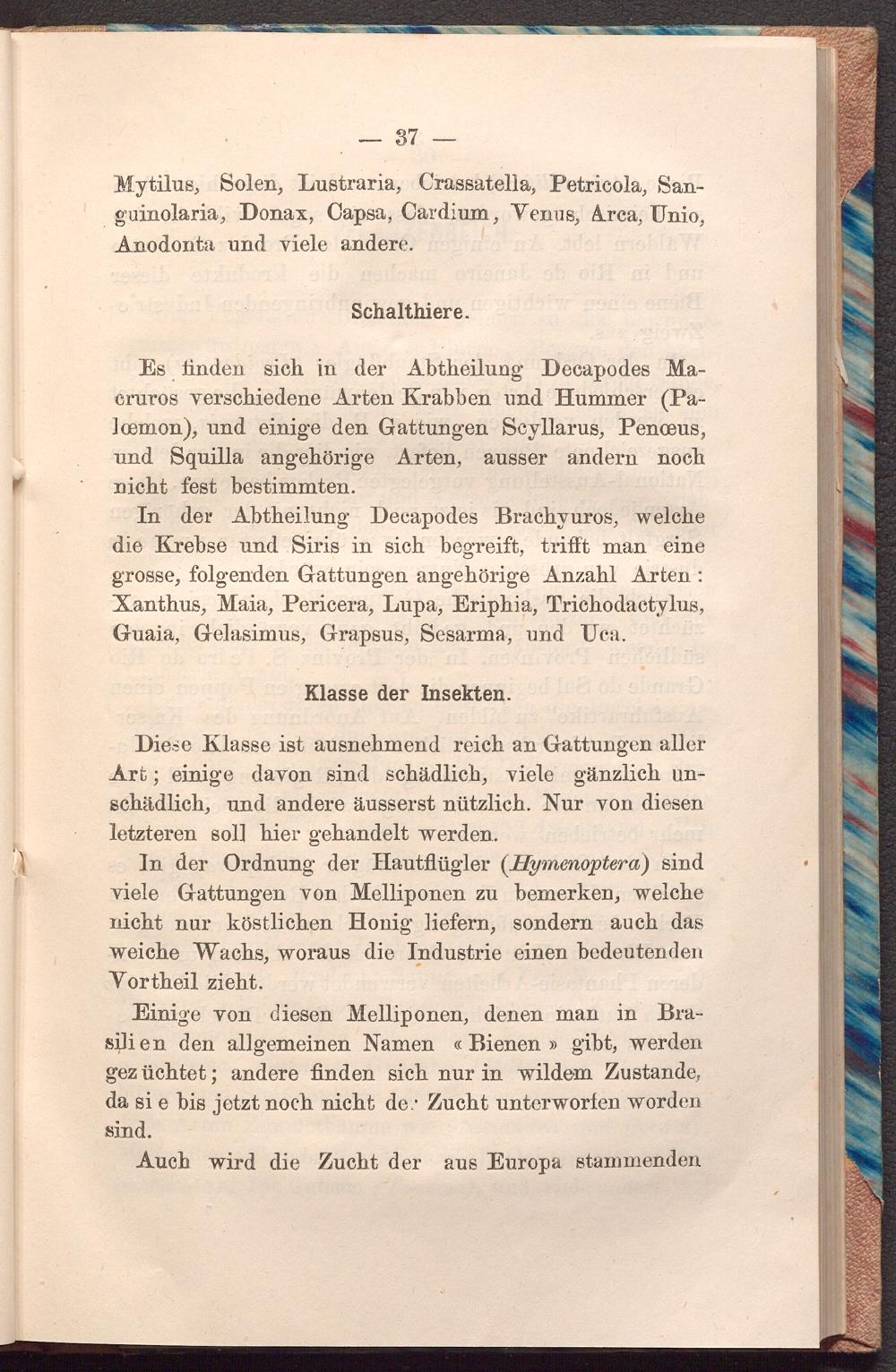 In der Abtheilung Decapodes Brachyuros, welche die Krebse und Siris in sich begreift, trifft man eine grosse, folgenden Gattungen angehörige Anzahl Arten: Xanthus, Maia, Pericera, Lupa, Eriphia, Trichodactylus, Guaia, Gelasimus, Grapsus, Sesarma, und Uca.