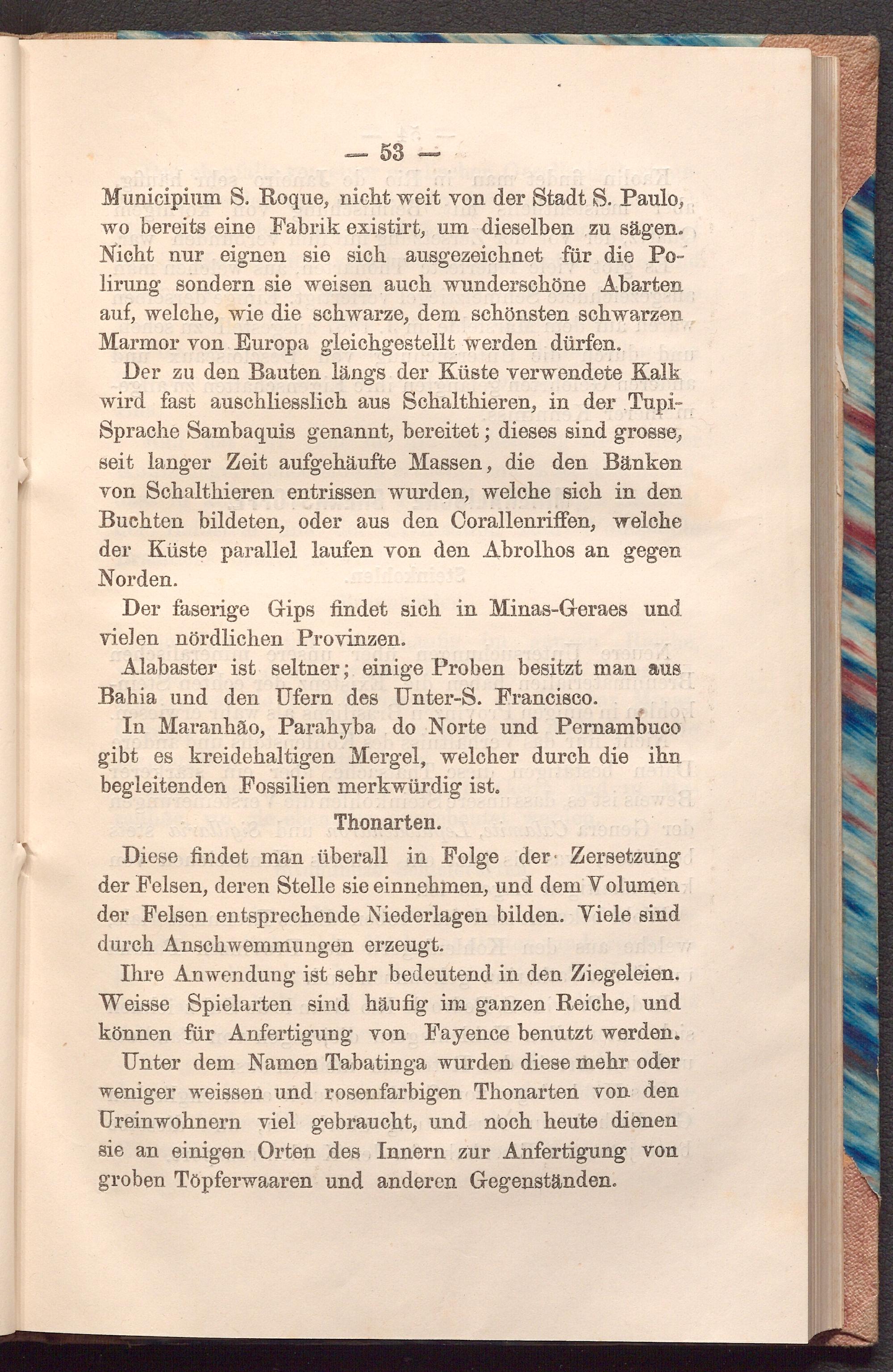 Unter dem Namen Tabatinga wurden diese mehr oder weniger weissen und rosenfarbigen Thonarten von den Ureinwohnern viel gebraucht, und noch heute dienen sie an einigen Orten des Innern zur Anfertigung von groben Töpferwaaren und anderen Gegenständen.