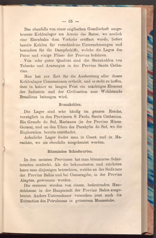 Von sehr guter Qualität sind die Steinkohlen von Tubarão und Araranguá in der Provinz Santa Catharina.of of