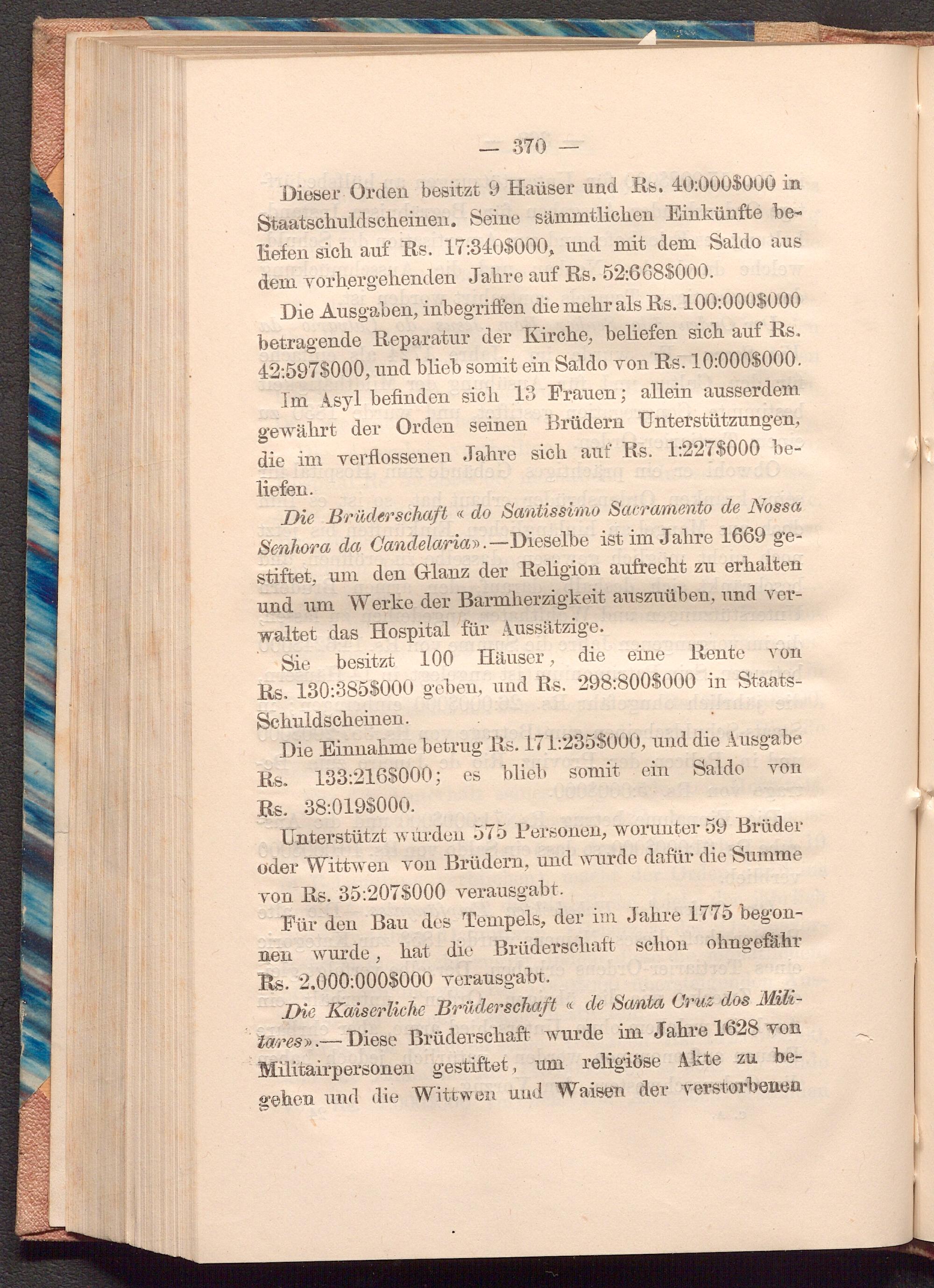 Die Kaiserliche Brüderschaft« de Santa Cruz dos Militares». Diese Brüderschaft wurde im Jahre 1628 von Militairpersonen gestiftet, um religiöse Akte zu begehen und die Wittwen und Waisen der verstorbenen