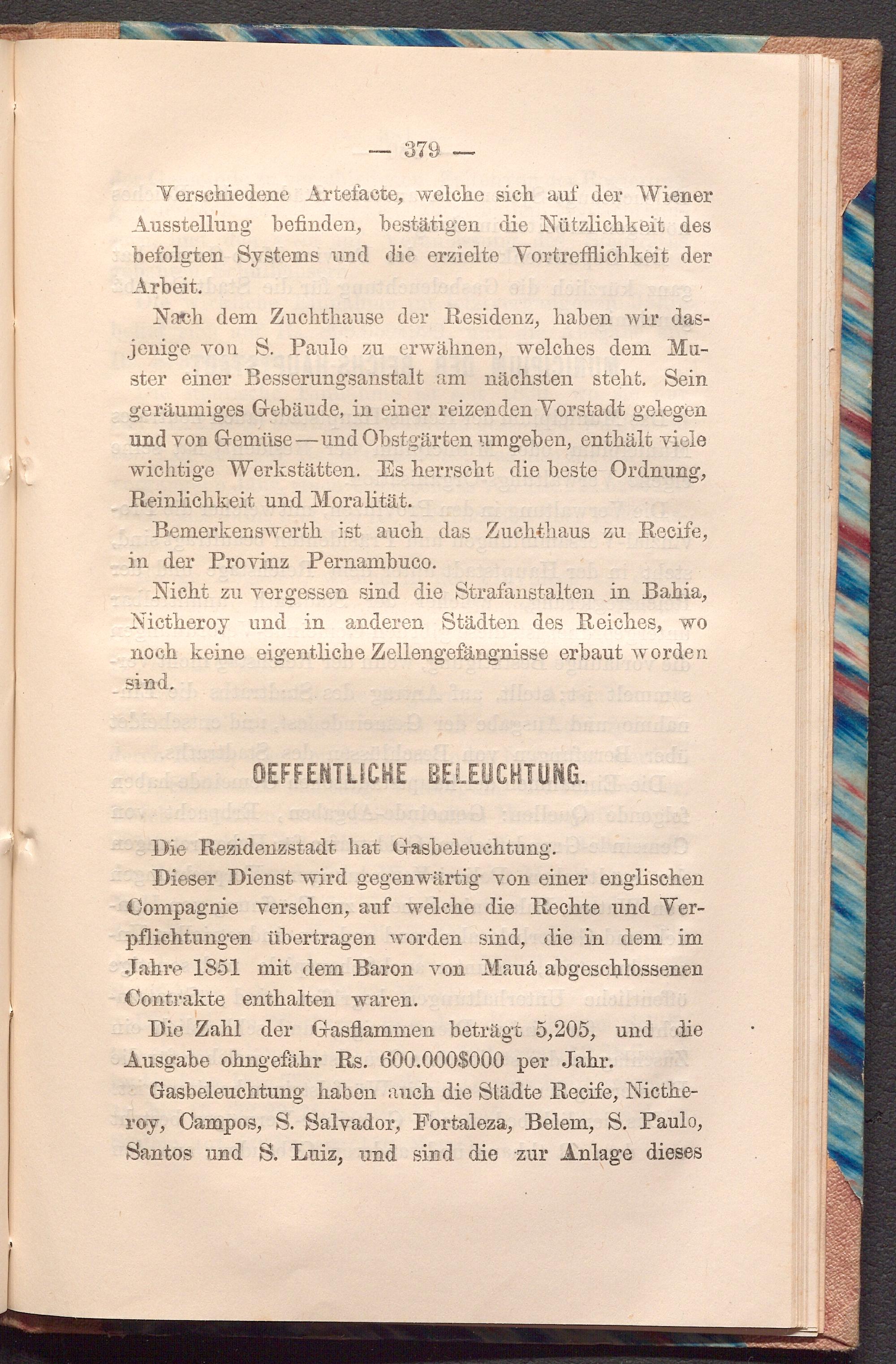 Gasbeleuchtung haben auch die Städte Recife, Nictheroy, Campos, S. Salvador, Fortaleza, Belem, S. Paulo, Santos und S. Luiz, und sind die zur Anlage dieses