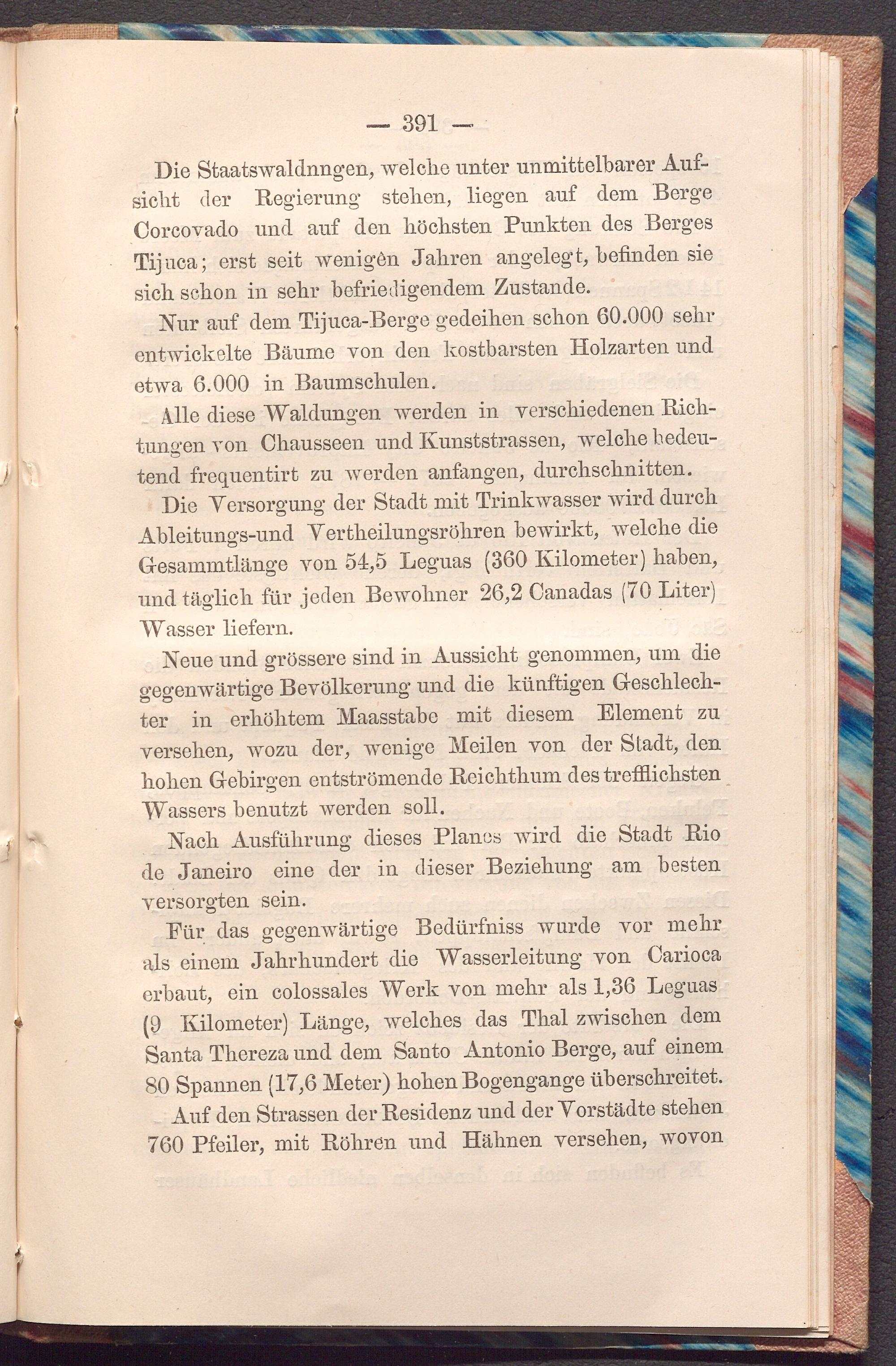 Die Staatswaldnngen, welche unter unmittelbarer Aufsicht der Regierung stehen, liegen auf dem Berge Corcovado und auf den höchsten Punkten des Berges Tijuca; erst seit wenigen Jahren angelegt, befinden sie sich schon in sehr befriedigendem Zustande.