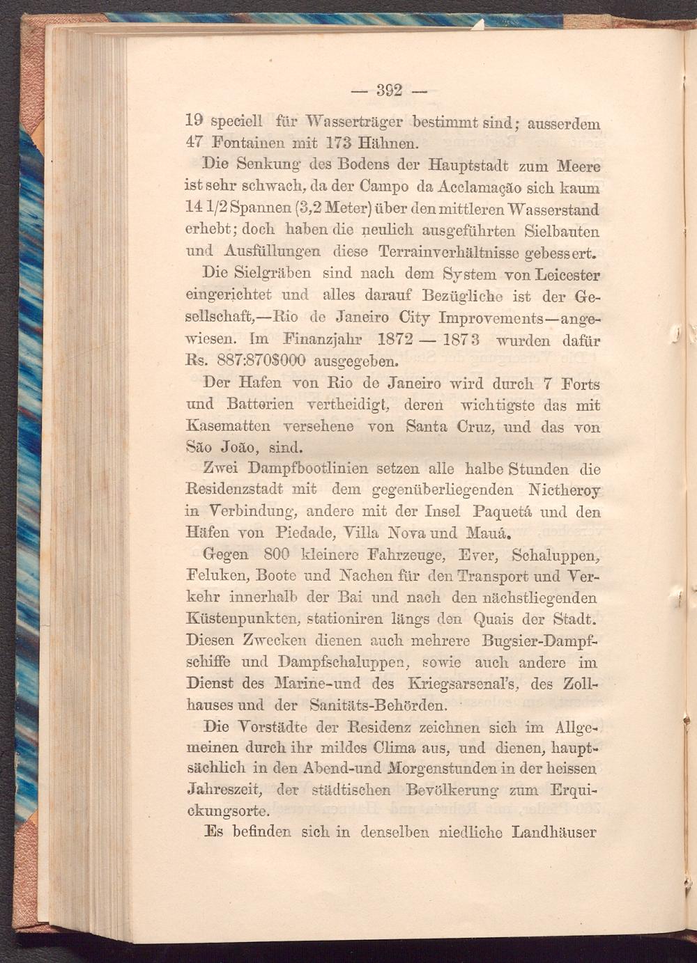 Die Sielgräben sind nach dem System von Leicester eingerichtet und alles darauf Bezügliche ist der Gesellschaft, Rio de Janeiro City Improvements- angewiesen. Im Finanzjahr 1872 1873 wurden dafür Rs. 887: 8708000 ausgegeben.