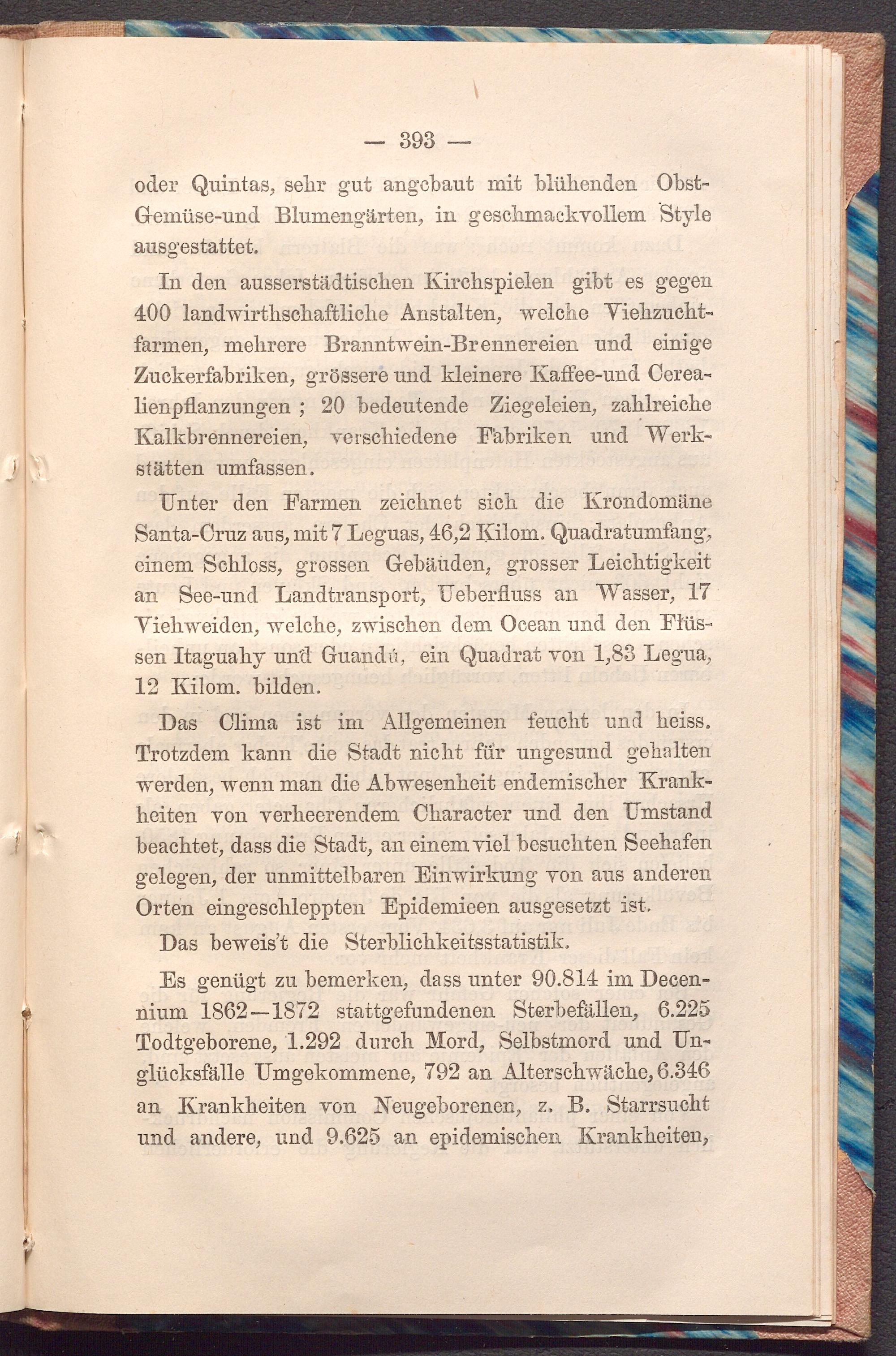 Es genügt zu bemerken, dass unter 90.814 im Decennium 1862-1872 stattgefundenen Sterbefällen, 6.225 Todtgeborene, 1.292 durch Mord, Selbstmord und Unglücksfälle Umgekommene, 792 an Alterschwäche, 6.346 an Krankheiten von Neugeborenen, z. B. Starrsucht und andere, und 9.625 an epidemischen Krankheiten,