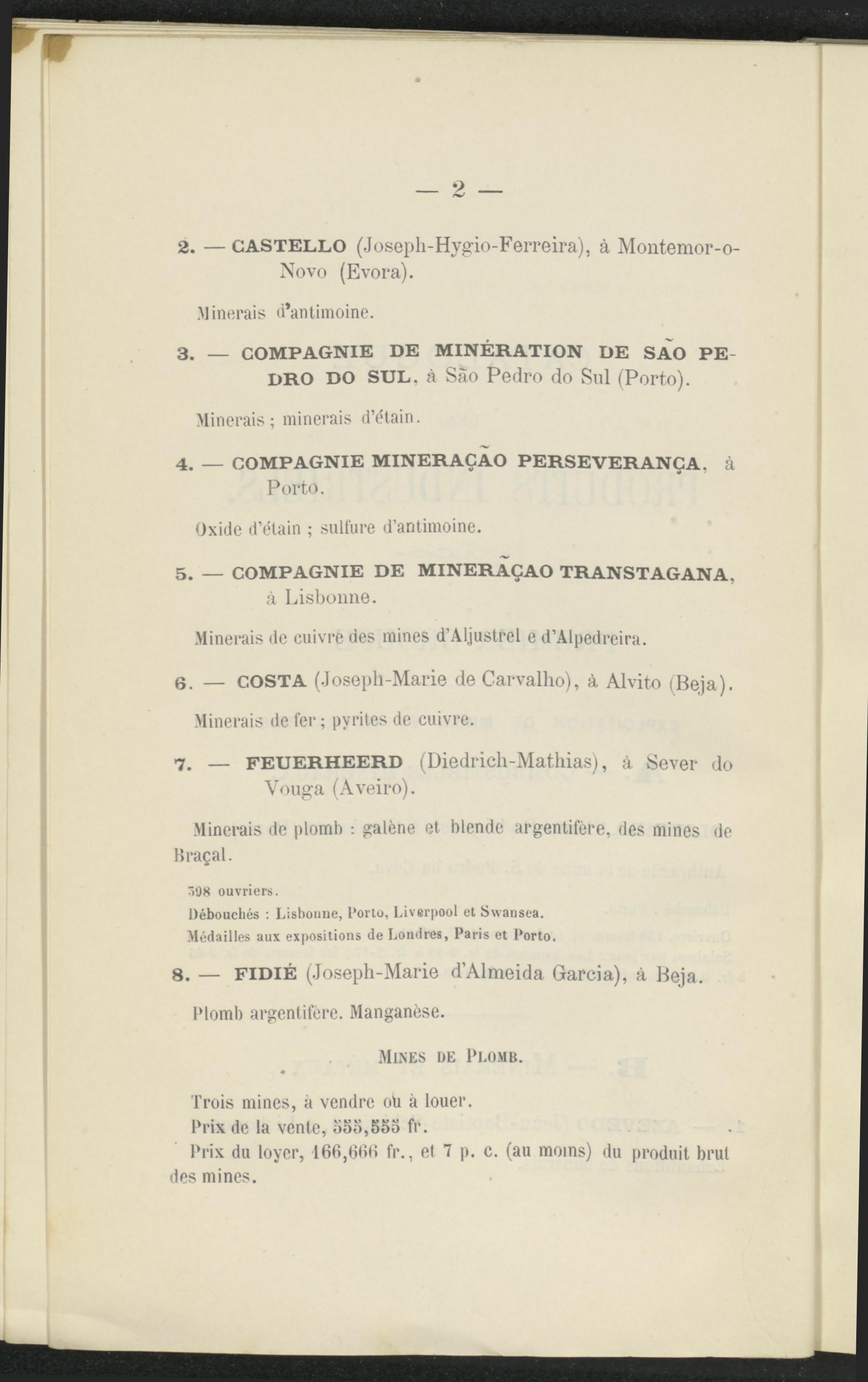 8. — FIDIÉ (Joseph-Marie d’Almeida Garcia), à Beja. Plomb argentifère. Manganèse.