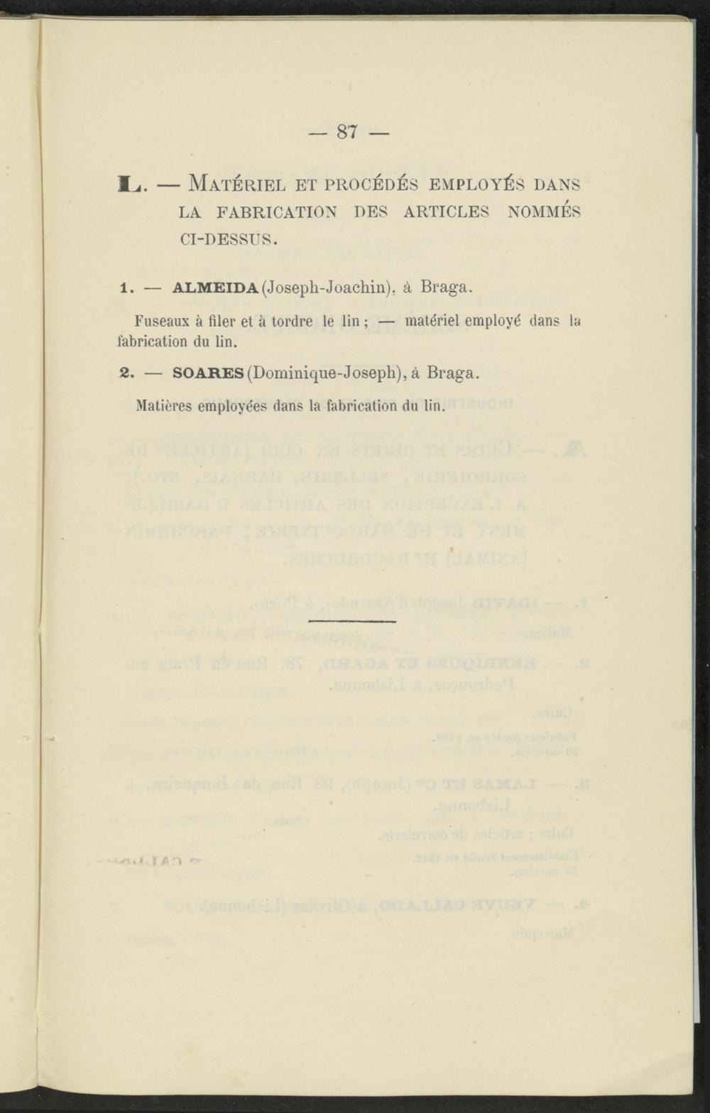2. — SOARES (Dominique-Joseph), à Braga. Matières employées dans la fabrication du lin.